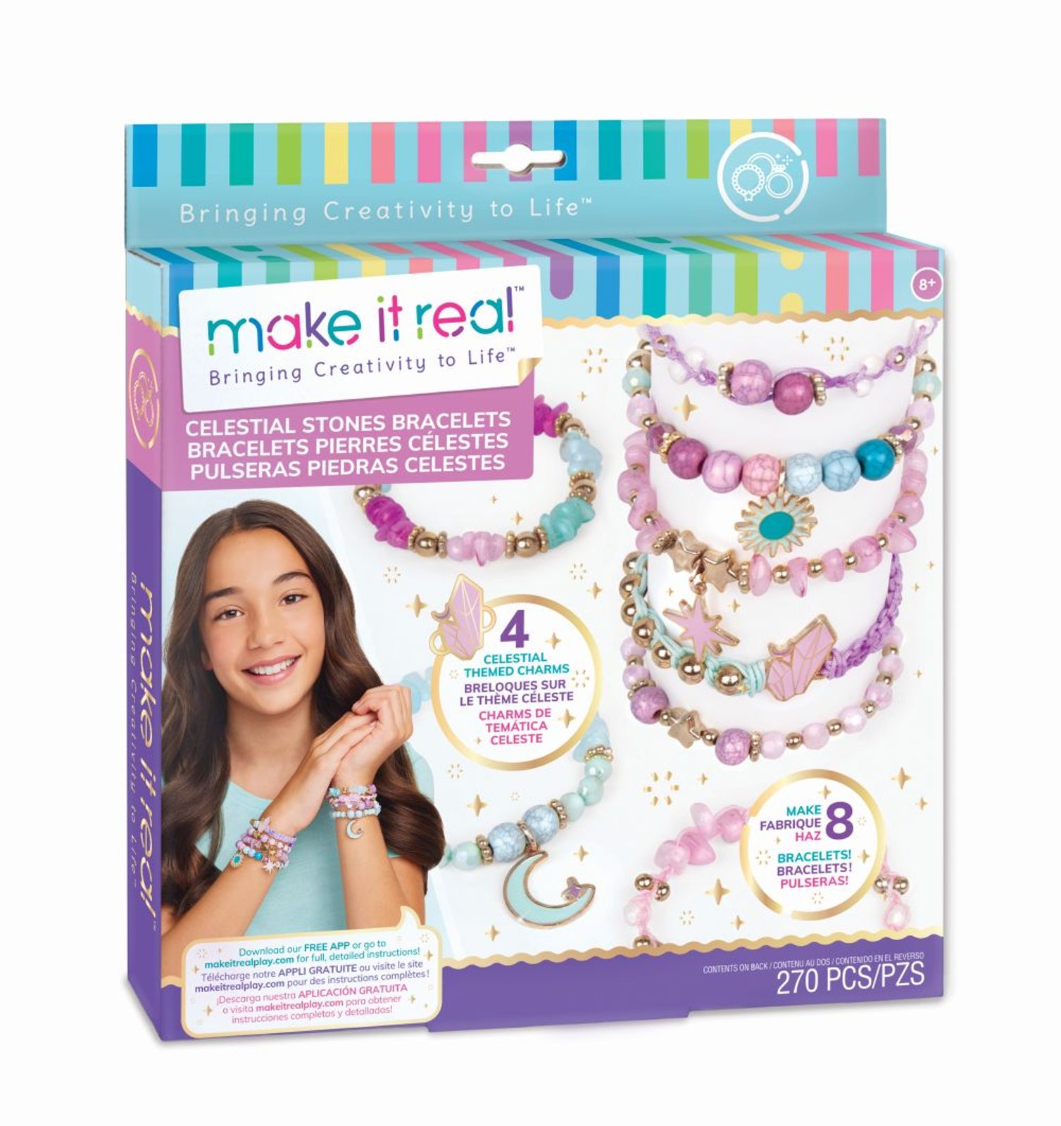 Sada obsahuje komponenty na výrobu osmi náramků. Oživte svůj svět kreativity a vyrobte si náramky dle vlastní představy. Sada obsahuje: 3 barevné šňůrky a čirou elastickou šňůrku, korálky, perličky, hvězdičky (260 ks) a 4 přívěšky. Baleno v krabici. Vhodné pro děti od 8 let.