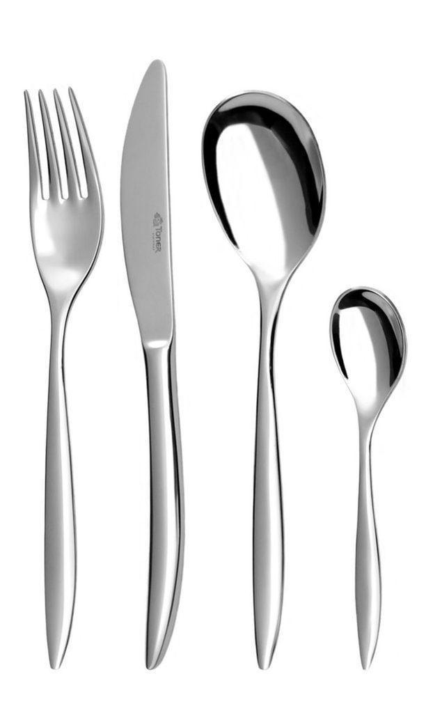 Materiál: nerez 18/0. Mechanicky leštěno do vysokého lesku. Vhodné do myčky. Obsah balení: 6*lžíce jídelní, 6*nůž jídelní, 6*vidlička jídelní, 6*lžíce na kávu.