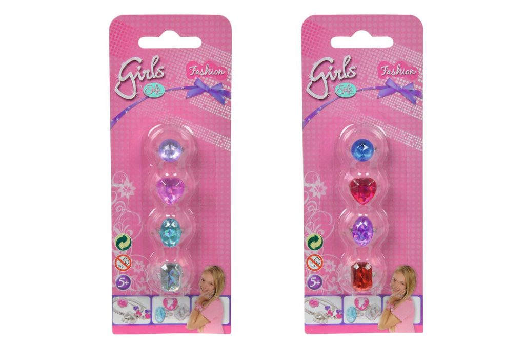 Sada prstýnků s "diamantem" pro holčičky. V sadě 4 ks různých tvarů a barev.