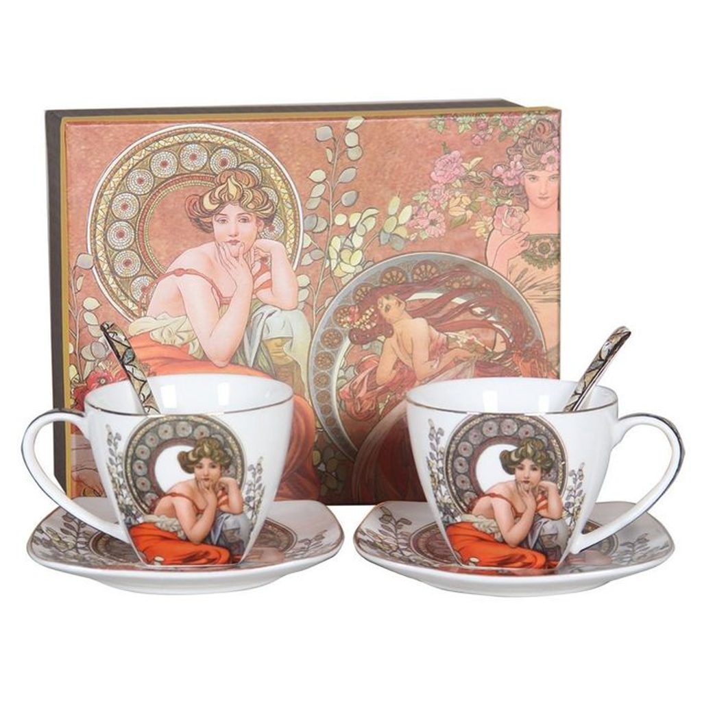 - šapo 250ml-2ks+lžička-2ks, A.MUCHA, světlý, DB, porcelán