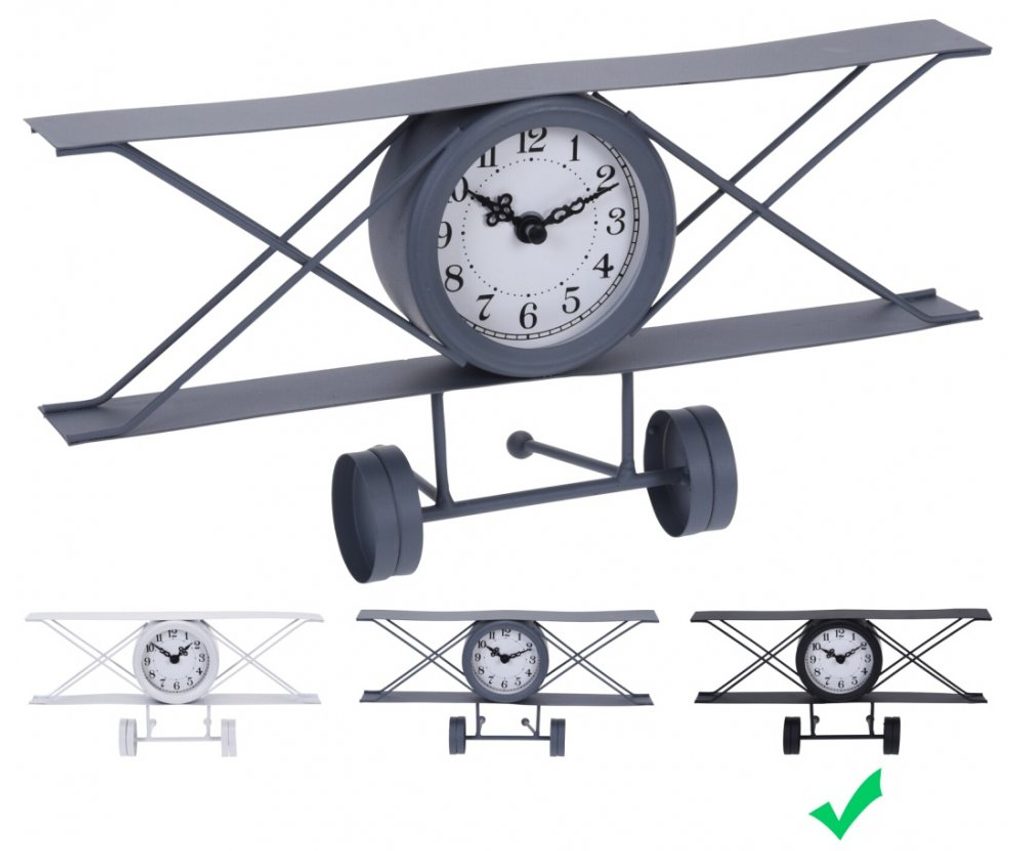 SEGNALE Hodiny stolní designové LETADLO 30 cm černá KO-HZ1911500cern