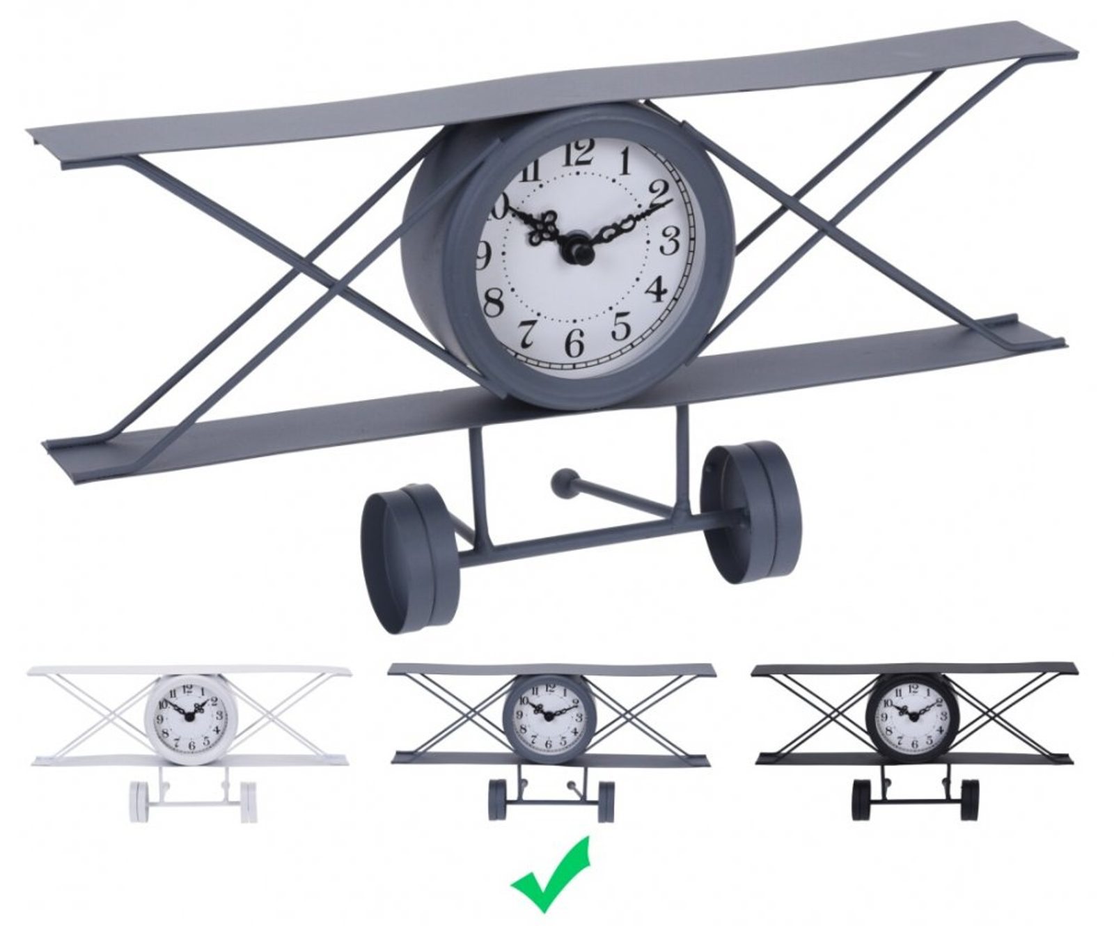 SEGNALE Hodiny stolní designové LETADLO 30 cm šedá KO-HZ1911500seda