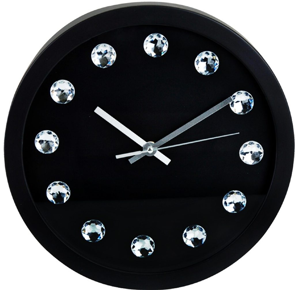 SEGNALE Nástěnné hodiny ručičkové s krystaly 30 cm černá KO-837164270cern