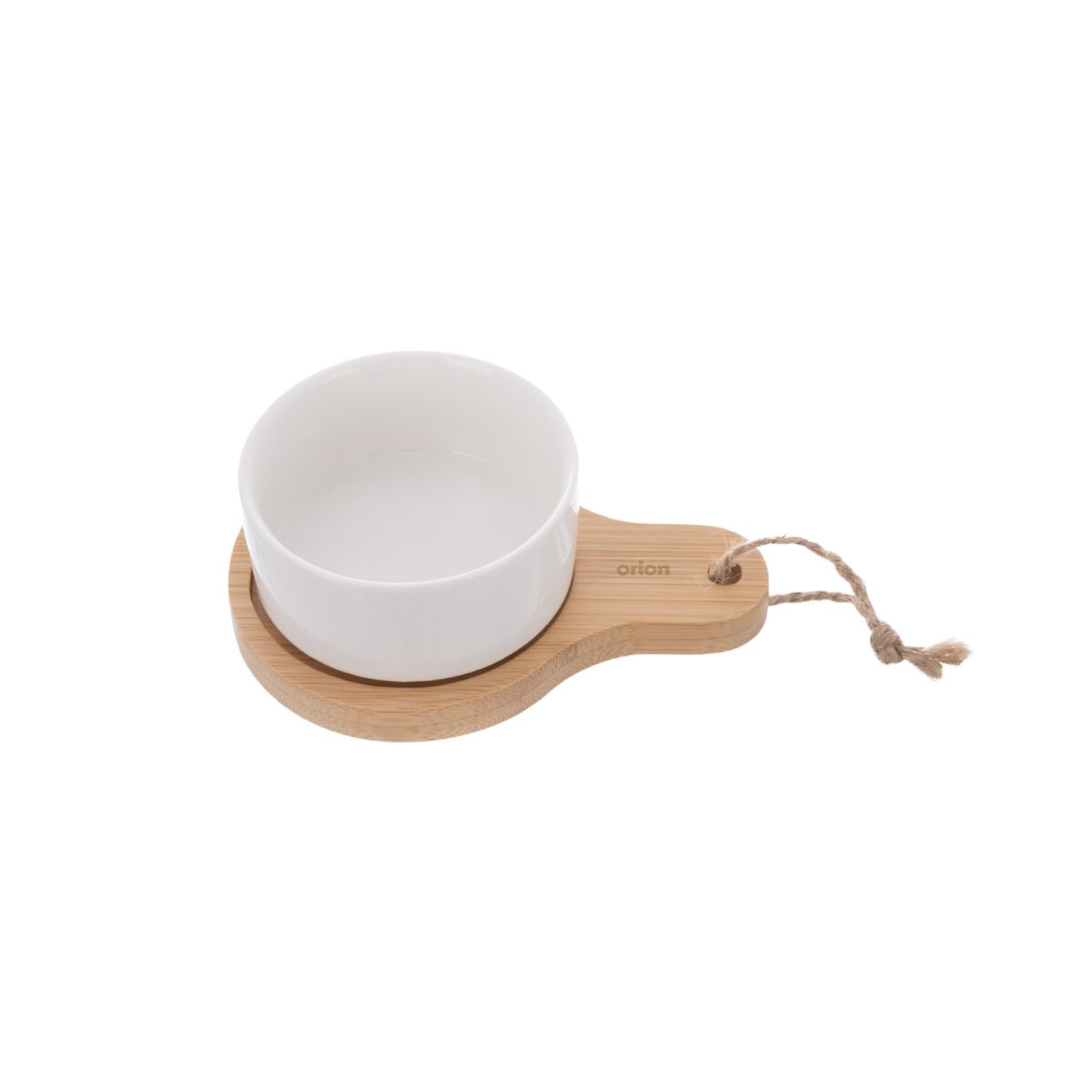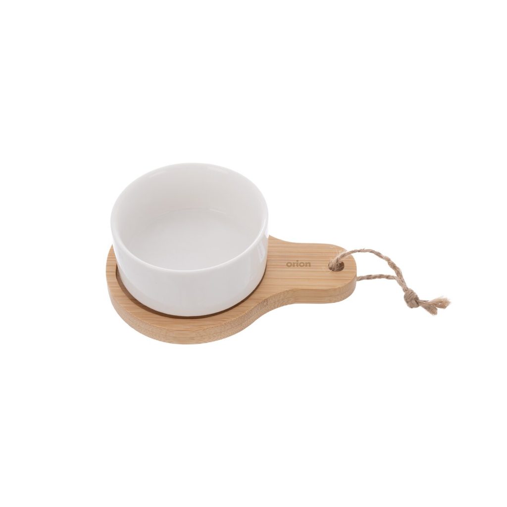 Miska s bambusovým táckem z kolekce WHITELINE je elegantní a praktický doplněk pro servírování různých pochoutek. Skvěle se hodí k podávání omáček, dipů, pomazánek nebo menších chuťovek, jako jsou olivy, kousky sýrů či jiné drobné delikatesy. Porcelánová miska je vhodná jak do myčky nádobí, tak do MVT, což usnadňuje její používání i údržbu. Bambusový tácek slouží nejen jako stylový podstavec, ale i jako ochrana stolu před případným ušpiněním – ten však není určen do myčky ani MVT. Tato kombinace porcelánu a přírodního bambusu spojuje funkčnost s estetickým vzhledem a je ideální pro každodenní použití i pro slavnostní příležitosti. Materiál: porcelán, bambus, jutový provázek. Rozměry: miska pr. 6,8 cm, v. 3,3 cm, o. 80 ml, tácek 11,5x7,8x1 cm, celková v. 4,2 cm.