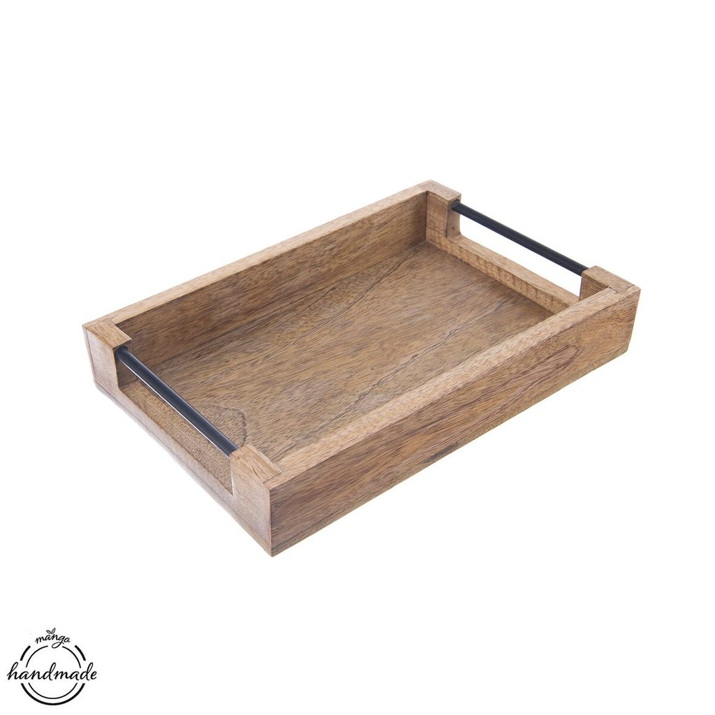 Masivní servírovací tác s uchy vypadá velmi stylově. Přenese občerstvení, kávu, je ideální na servírování vaší snídaně nebo večeře. Vytvoří krásnou dekoraci v době, kdy jej nepotřebujete. Snadno se udržuje, stačí jej lehce otřít a je připraven k dalšímu servírování (nenamáčejte). Materiál: mangové dřevo, kov. Rozměry: 30,5x20,5x5,3 cm.