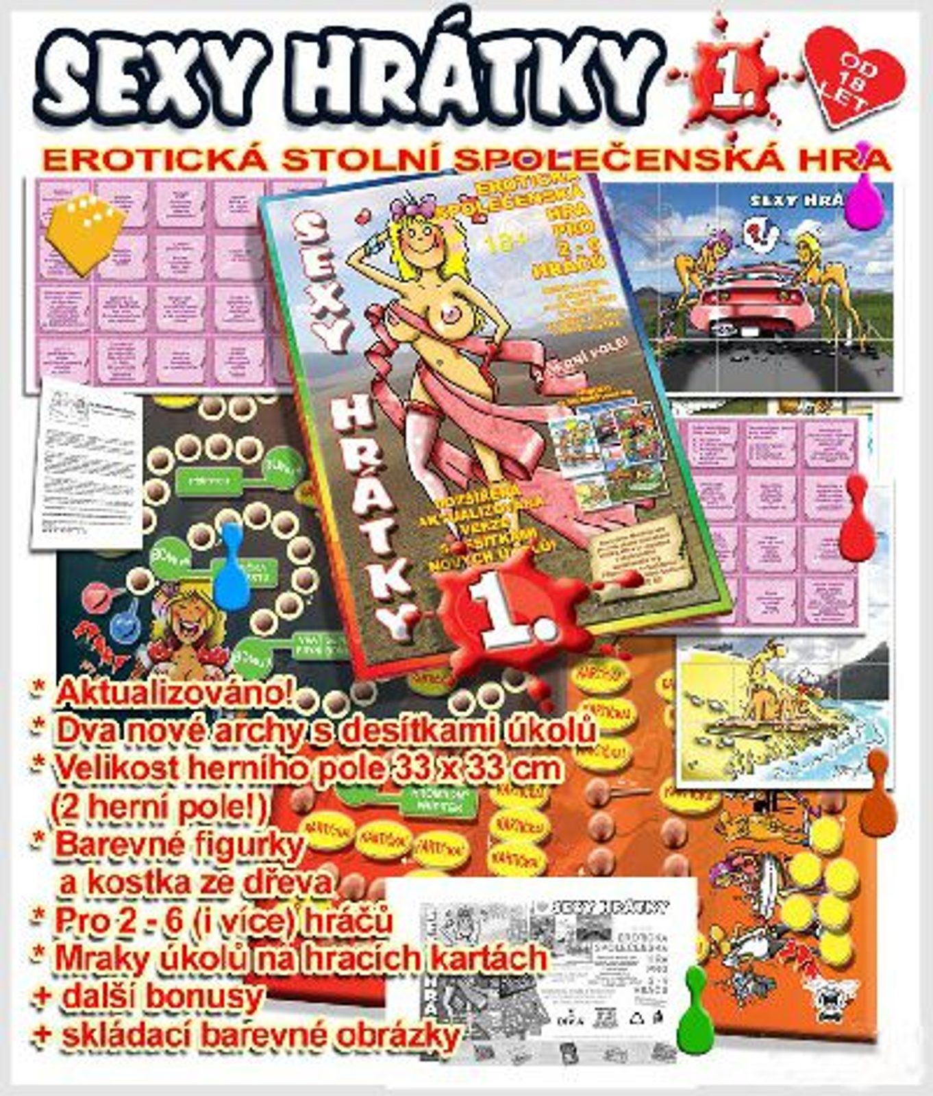 Sexy hrátky po česku -1 je zábavná erotická hra pro dospělé. Hra je plná úkolů, ale i různých bonusů. Jedno plátno si můžete užít společně s partnerem doku neotočíte na druhé plátno, které si můžete užít i s přáteli. Ve hře najdete mnoho zábavných úkolů na hracím poli, ale také na hracích kartičkách. Hra je velmi jednoduchá a zábavná.