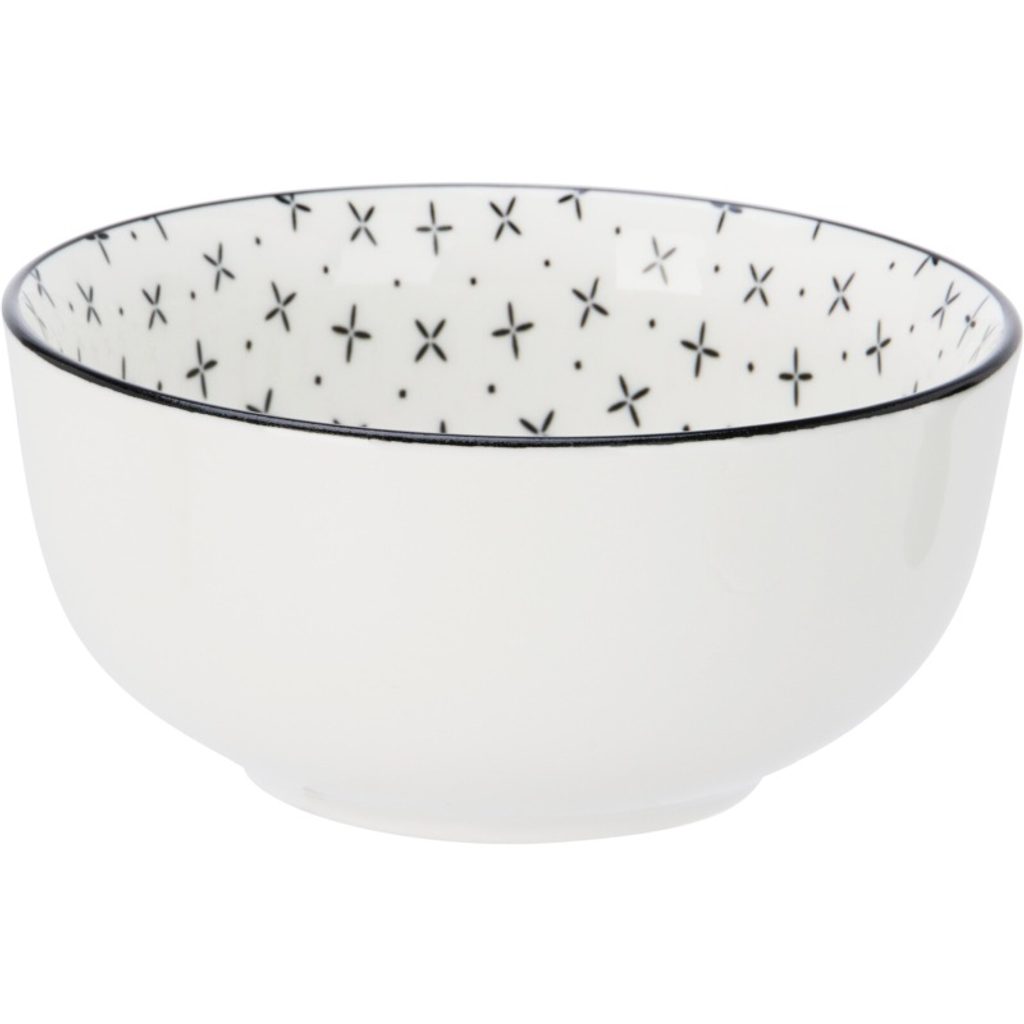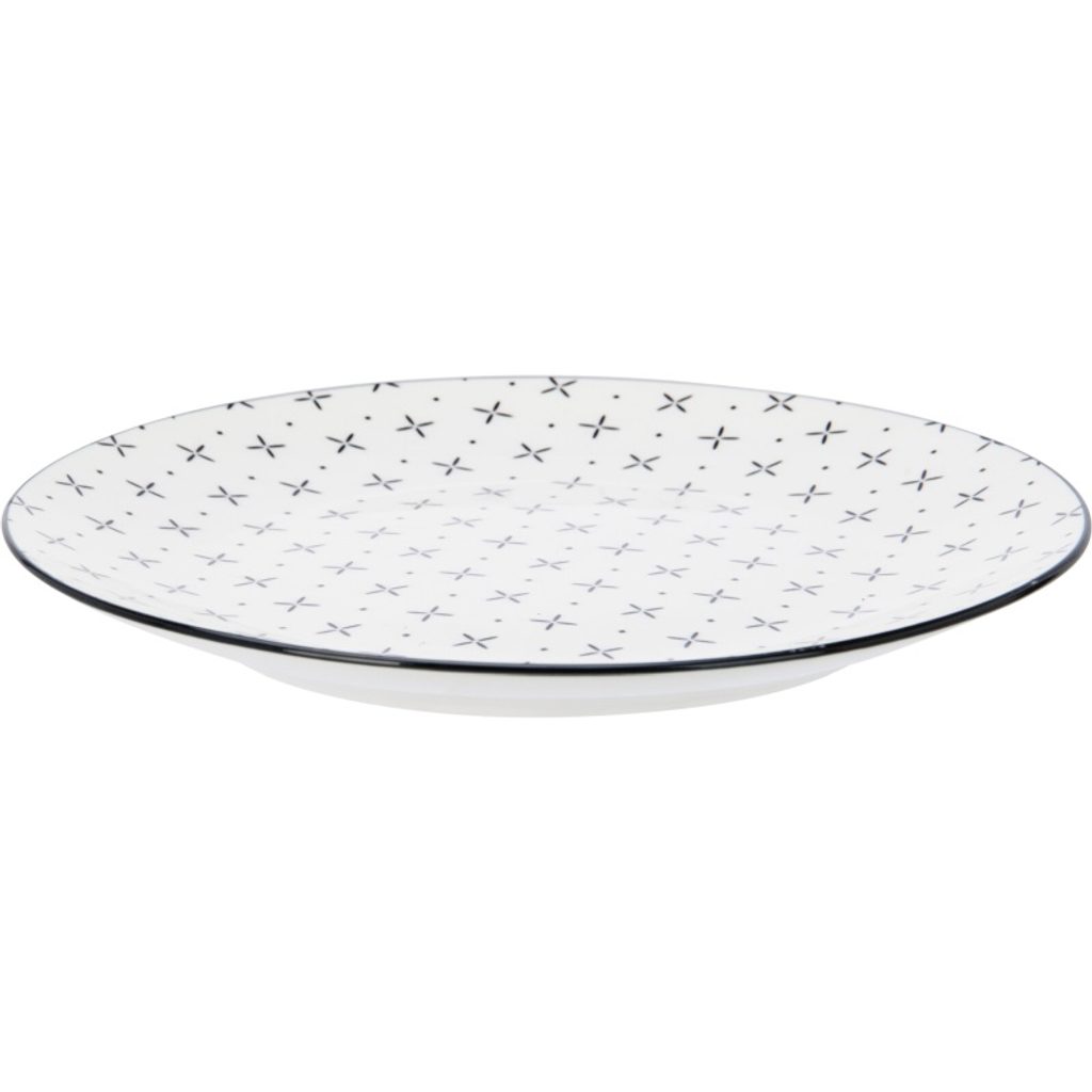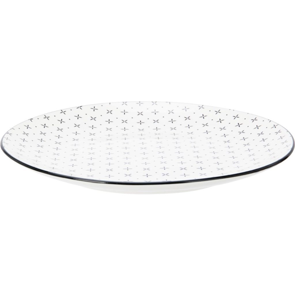 Stylová jídelní sada z kvalitního porcelánu s černým kosočtvercovým vzorem a černým okrajem, ideální pro každodenní i slavnostní stolování.