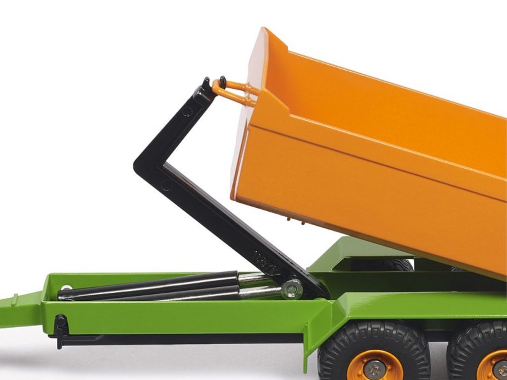 Každý malý zemědělec nebo farmář zajásá! Tento zelený tažný traktor Fendt má za sebou jasně oranžový přívěs, díky němuž můžete odvézt spoustu těžkého materiálu. Traktor má pružný čelní nakladač, odnímatelnou střechu a zadní spojku přívěsu. Model je vyroben z kvalitního a odolného materiálu v měřítku 1:50 a zaujme mnoha propracovanými detaily. Rozměr: 268 x 58 x 70 mm. Rozměr balení: 9,7 x 34 x 6,5 cm. Věk: 3+