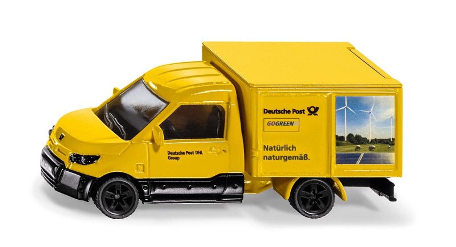 SIKU Super – Žlutá dodávka, elektrický transportér pro dodávky zásilek. Chod motoru je velmi tichý. Elektrický transportér je navržen speciálně pro dodávání balíků. Transportér je kompaktní, snadno manévrovatelný a svižný v městském provozu. Zapuštěné přední světlomety podtrhují výrazný design. V detailním měřítku 1:50 je kabina řidiče a podvozek vyroben z kovu. Lze otevřít zadní plastové dveře. Designové ráfky s gumovými pneumatikami. Tažné zařízení. Rozměr: 99 x 39 x 39 mm. Rozměr balení: 13,9 x 5,1 x 8,7 cm. Věk: 3+