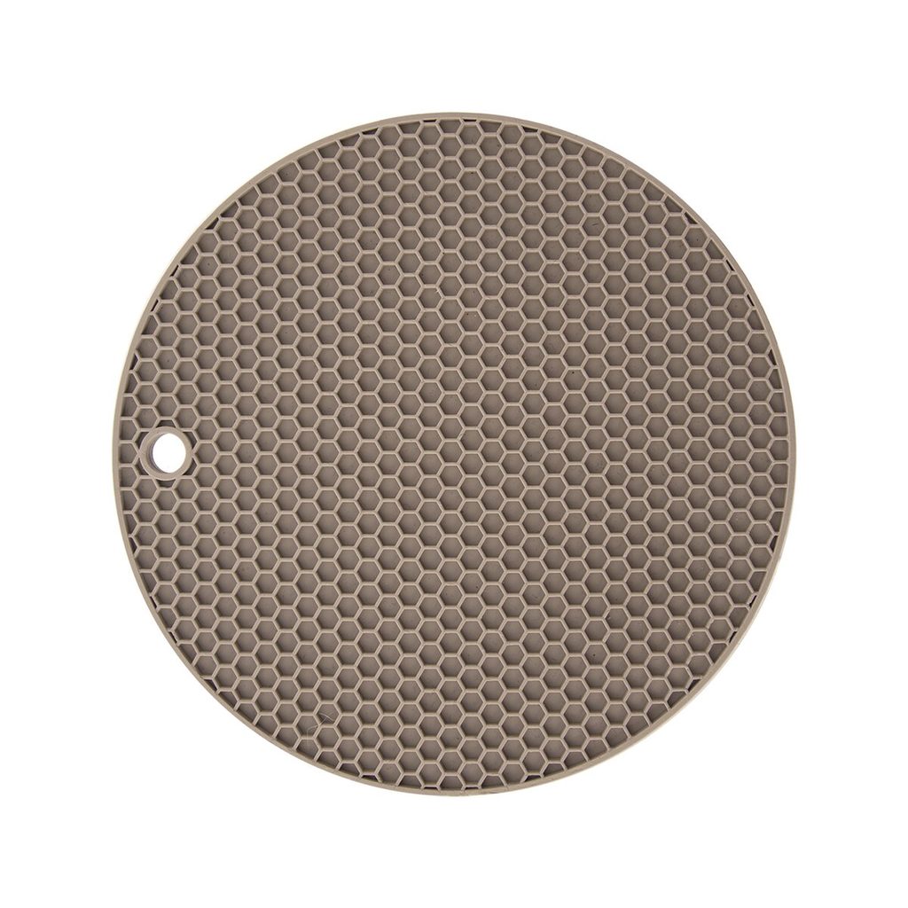 Podložka pod hrnec ochrání kuchyňskou linku, stůl nebo jiný povrch od poničení od teplého dna hrnce, pánve, čajníku, pekáče... Využijete ji k odložení hrnce při vaření nebo při servírování na stůl. Dle velikosti nádoby můžete využít jednu samotnou nebo 2 kusy k sobě pod pekáč nebo plech. Materiál: silikon. Rozměry: pr. 17,8 cm, v. 0,7 cm. Snáší teploty od – 10 °C do +220 °C. Je vhodná do myčky.