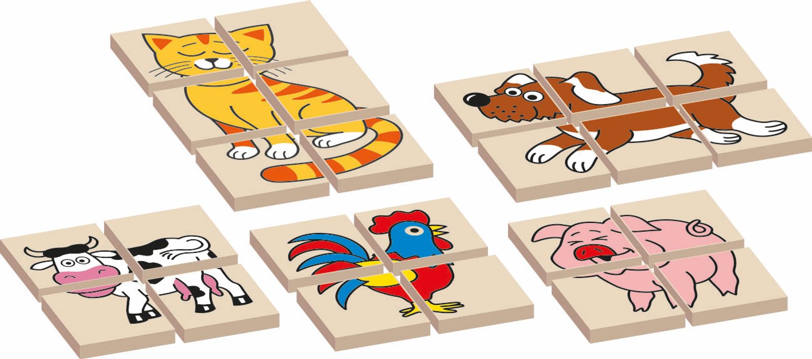 Dřevěná skládanka s motivem zvířátek pro procvičení paměti a soustředění.