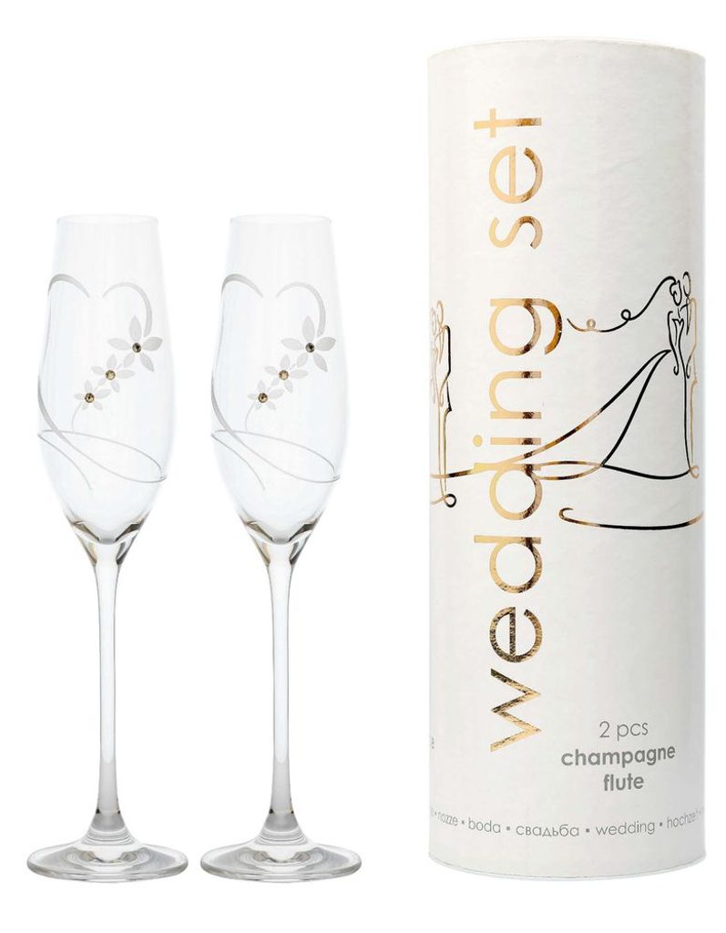 sklen. 210ml, 2ks, 100, SVATEBNÍ set, d6,6x26,3cm, Swarovski-flétna
