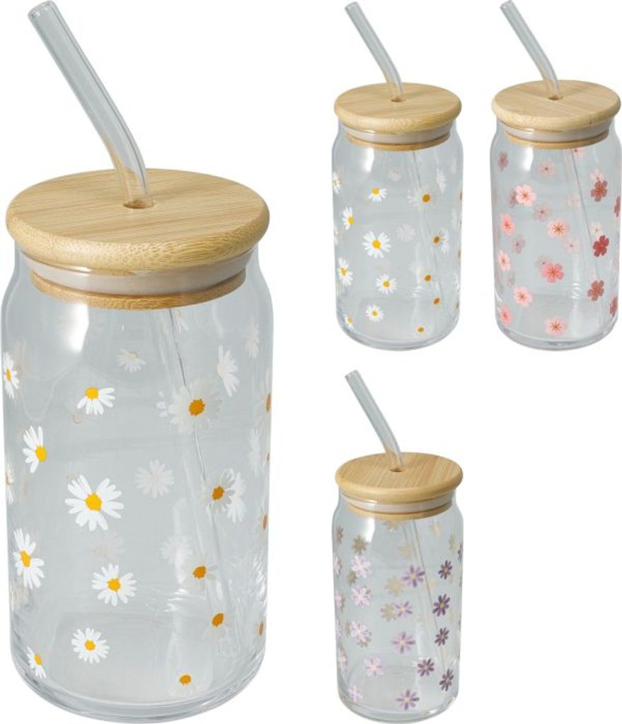 - sklen. 500ml, 1ks, KYTIČKY, 3dekory, brčko, uz.bambus, sklo
