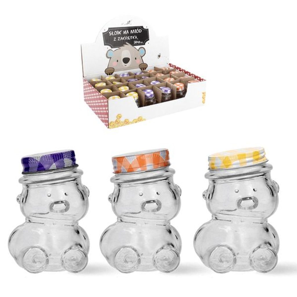 - sklen.šroub. 300ml MEDVÍDEK-sklo+kov.víčko-3barvy