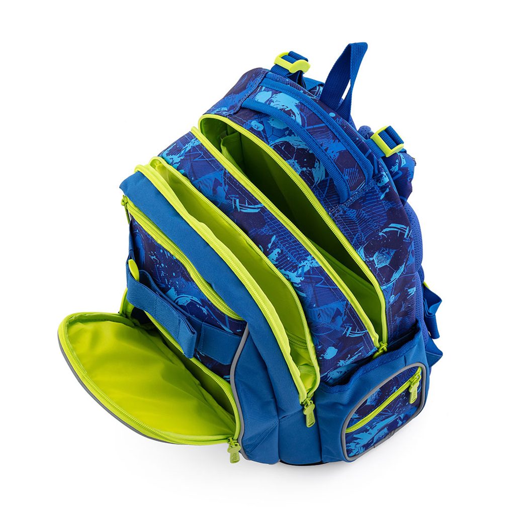 Školní batoh z řady OXY GO na sebe jednoduše strhne pozornost. Designové provedení zaujme každého kluka i holku. Perfektní tvar batohu ukrývá nejen anatomicky tvarovaná a prodyšná záda, ale také možnost nastavit si ramenní popruhy pro lepší pohodlí a komfortnější nošení. Dvě vnitřní kapsy nabízí dostatek prostoru pro učebnice, sešity i věci na volný čas. Pevné dno zabraňuje jak ušpinění zvenku, tak protečení čehokoliv, co se vylije uvnitř. Po stranách najdete dvě větší kapsy.