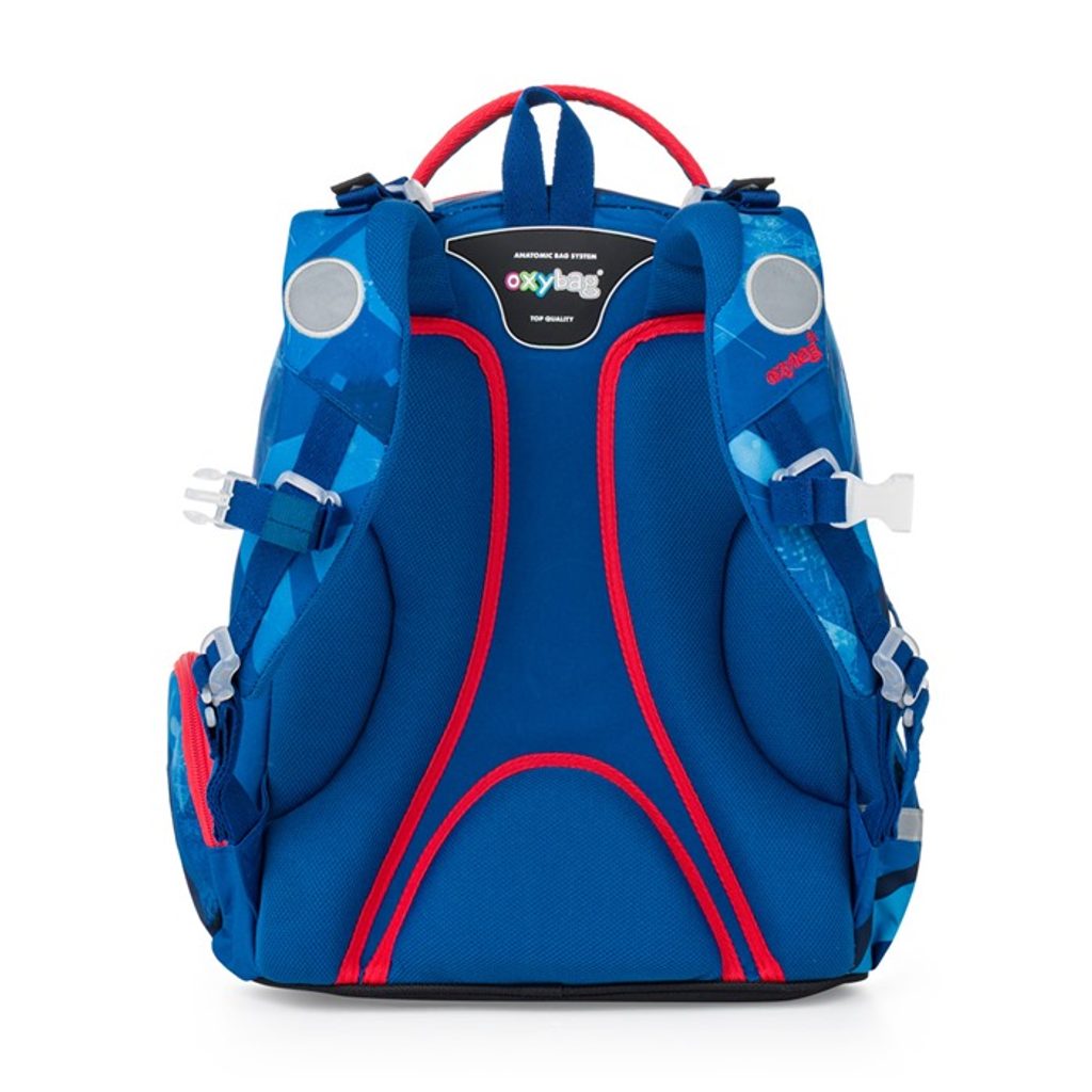 Školní batoh z řady OXY GO na sebe jednoduše strhne pozornost. Designové provedení zaujme každého školáka. Perfektní tvar batohu ukrývá nejen anatomicky tvarovaná a prodyšná záda, ale také možnost nastavit si ramenní popruhy pro lepší pohodlí a komfortnější nošení. Navíc je batoh opatřen přidávnými háčky pro uchycení dlouhých popruhů. Dvě vnitřní kapsy nabízí dostatek prostoru pro učebnice, sešity i věci na volný čas. Pevné nepromokavé dno zabraňuje jak ušpinění zvenku, tak protečení čehokoliv, co se vylije uvnitř. Po stranách najdete dvě menší kapsy, jednu otevřenou a druhou na zip. Batoh nabízí velkorysé množství nejrůznějších kapes, ať už velkých nebo i malých. Lehký, přitom dostatečně velký pro všechny věci, které chce mít každý školák po ruce. Mysleli jsme také na bezpečnost vašich dětí, proto batohu nechybějí reflexní prvky. Batoh je ideální na první stupeň do 1. - 3. třídy pro děti vysoké od 125 cm. Délka zádového panelu je 39 cm, objem činí 22 l, hmotnost batohu je 930 g a jeho nosnost je 8 kg. Rozměr: 295*195*390 mm, Hmotnost: 930 g