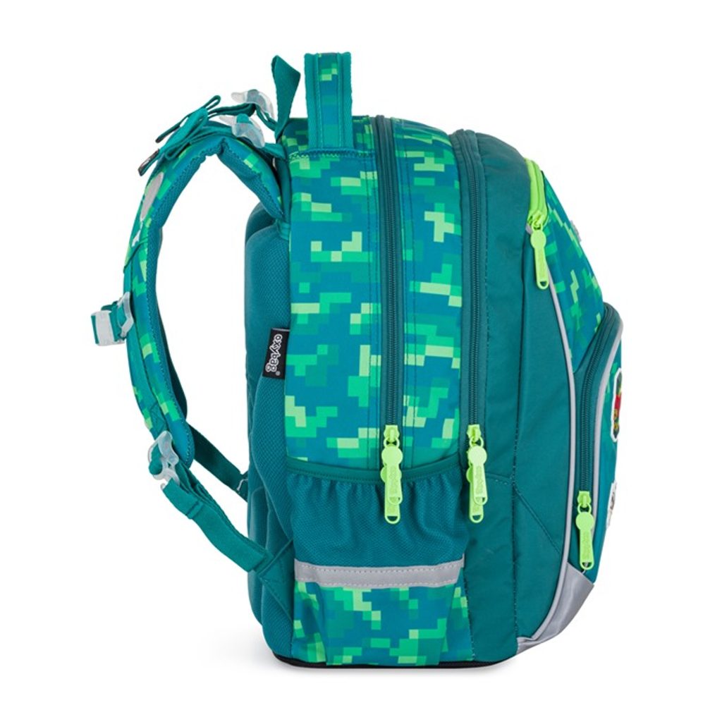 Školní batoh z řady OXY GO na sebe jednoduše strhne pozornost. Designové provedení zaujme každého školáka. Perfektní tvar batohu ukrývá nejen anatomicky tvarovaná a prodyšná záda, ale také možnost nastavit si ramenní popruhy pro lepší pohodlí a komfortnější nošení. Navíc je batoh opatřen přidávnými háčky pro uchycení dlouhých popruhů. Dvě vnitřní kapsy nabízí dostatek prostoru pro učebnice, sešity i věci na volný čas. Pevné nepromokavé dno zabraňuje jak ušpinění zvenku, tak protečení čehokoliv, co se vylije uvnitř. Po stranách najdete dvě menší kapsy, jednu otevřenou a druhou na zip. Batoh nabízí velkorysé množství nejrůznějších kapes, ať už velkých nebo i malých. Lehký, přitom dostatečně velký pro všechny věci, které chce mít každý školák po ruce. Mysleli jsme také na bezpečnost vašich dětí, proto batohu nechybějí reflexní prvky. Batoh je ideální na první stupeň do 1. - 3. třídy pro děti vysoké od 125 cm. Délka zádového panelu je 39 cm, objem činí 22 l, hmotnost batohu je 930 g a jeho nosnost je 8 kg.
