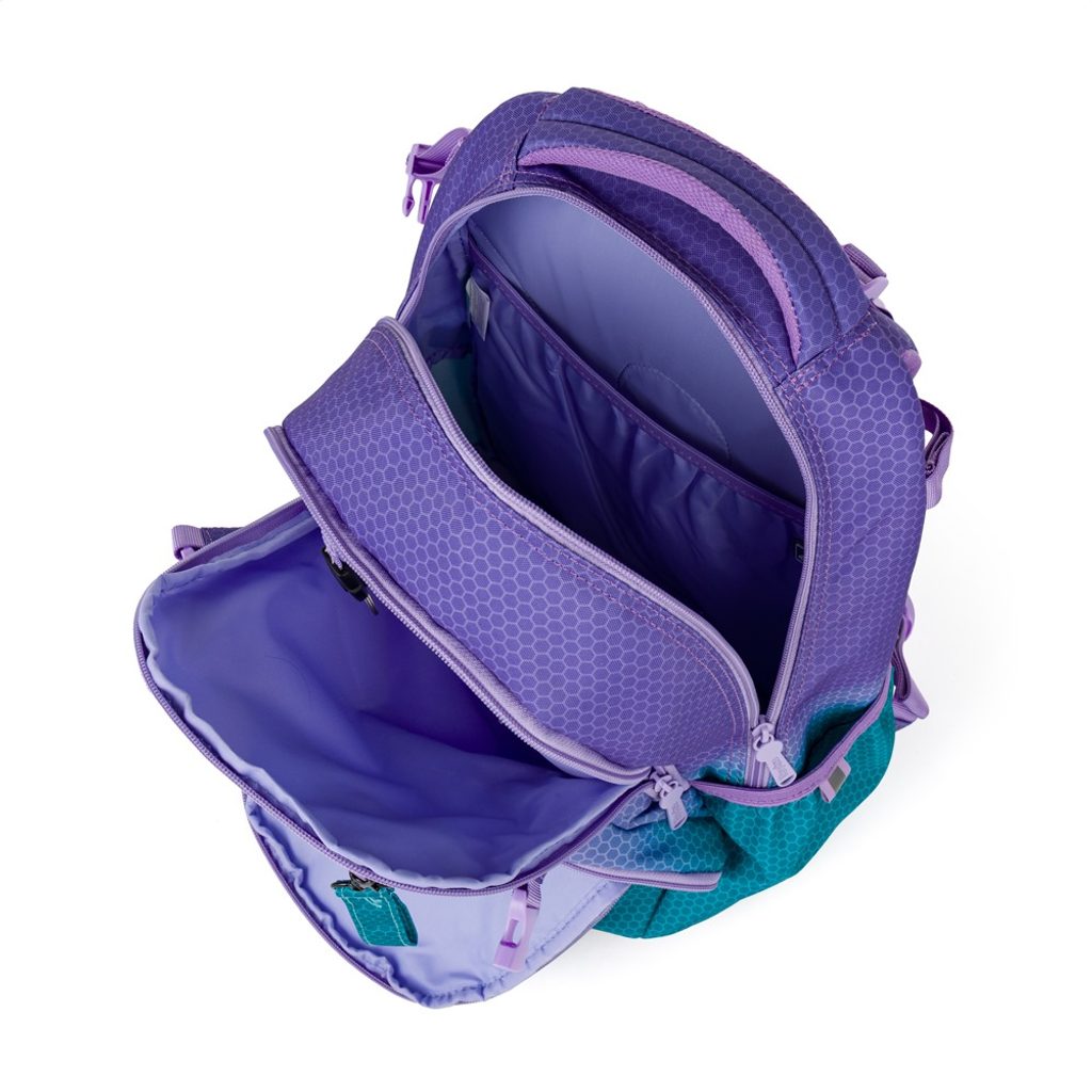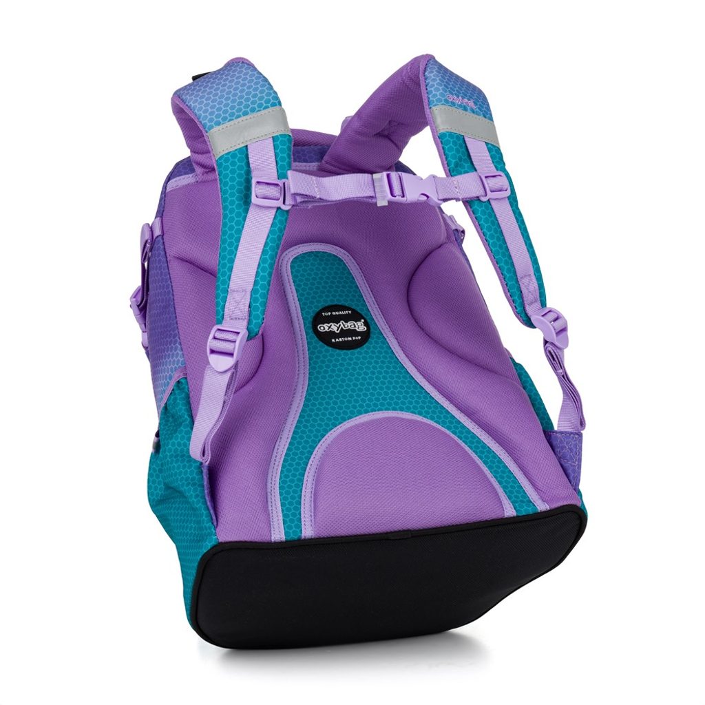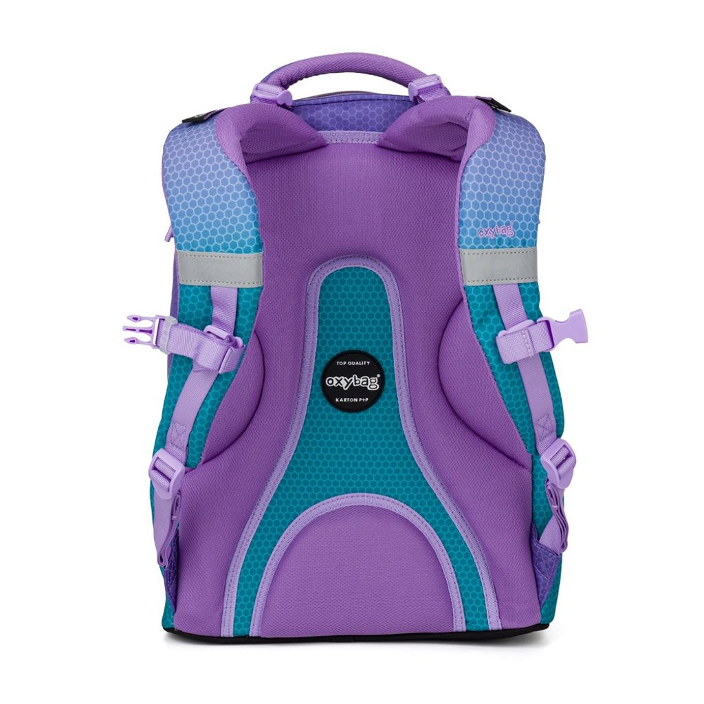 Školní batoh z řady OXY Ombre je ideální pro školáky od 3. třídy. Moderní design ve stylu ombre zaujme na první pohled. Anatomicky tvarovaný zádový panel, polstrované ramenní popruhy a nastavitelný hrudní popruh zajistí záda jako v bavlnce každému školákovi. Pevné dno zabraňuje převrhnutí samostatně stojícího batohu. Batoh disponuje dvěma prostornými kapsami na všechny potřebné školní pomůcky. V bočních postranních kapsách na gumu je prostor pro láhev na pití, která je snadno dostupná pro doplnění pitného režimu každého školáka. Do přední kapsičky se snadno schová menší svačina. Nechybí řada reflexních prvků. Batoh je vhodný pro děti vysoké od 136 cm. Délka zádového panelu je 43 cm, objem činí 28 l, hmotnost batohu je 960 g a jeho nosnost je 8 kg.
