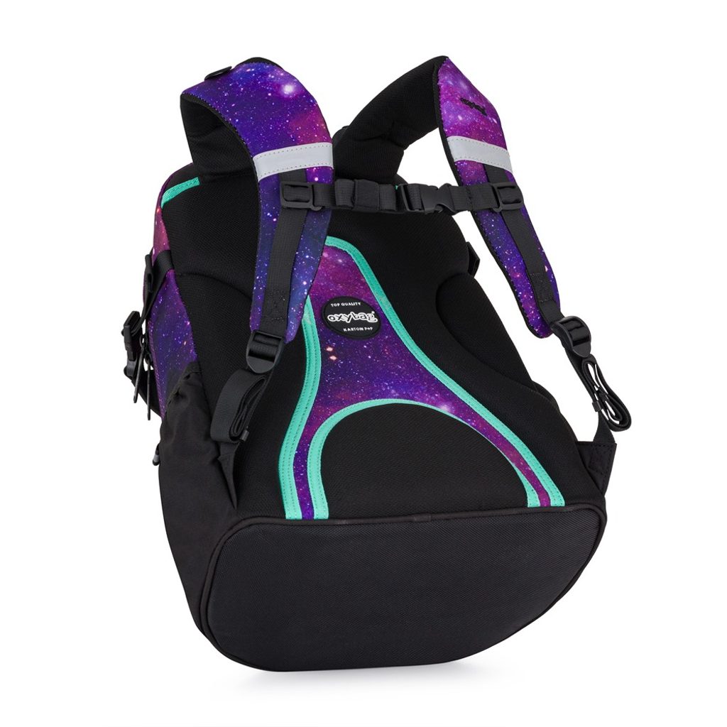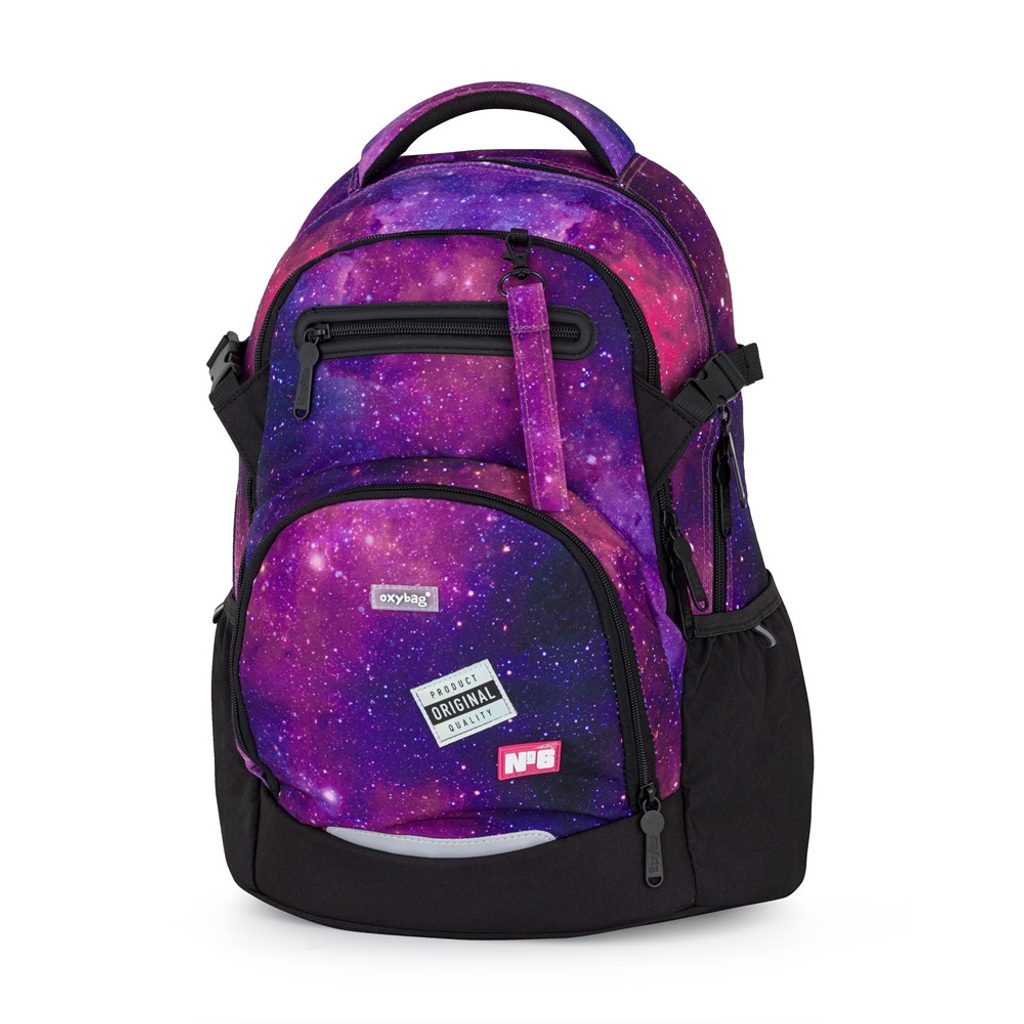 Školní batoh z řady OXY Ombre je ideální pro školáky od 3. třídy. Anatomicky tvarovaný zádový panel, polstrované ramenní popruhy a nastavitelný hrudní popruh zajistí záda jako v bavlnce každému školákovi. Pevné dno zabraňuje převrhnutí samostatně stojícího batohu. Batoh disponuje dvěma prostornými kapsami na všechny potřebné školní pomůcky. V bočních postranních kapsách na gumu je prostor pro láhev na pití, která je snadno dostupná pro doplnění pitného režimu každého školáka. Do přední kapsičky se snadno schová menší svačina. Nechybí řada reflexních prvků. Batoh je vhodný pro děti vysoké od 136 cm. Délka zádového panelu je 43 cm, objem činí 28 l, hmotnost batohu je 960 g a jeho nosnost je 8 kg.