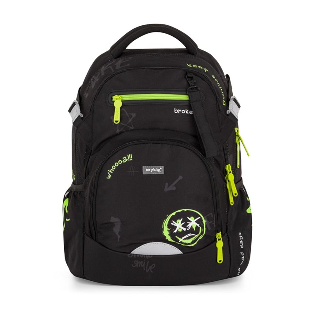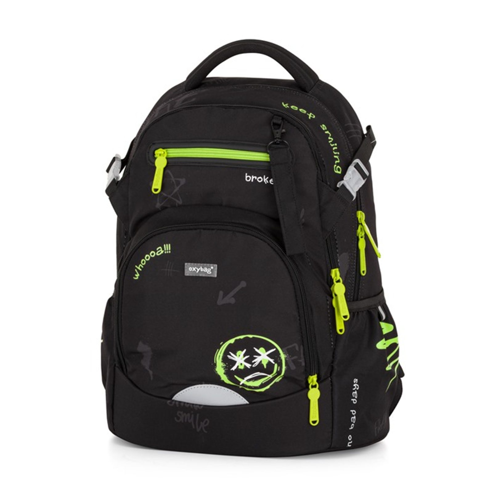 Školní batoh z řady OXY Ombre je ideální pro školáky od 3. třídy. Anatomicky tvarovaný zádový panel, polstrované ramenní popruhy a nastavitelný hrudní popruh zajistí záda jako v bavlnce každému školákovi. Pevné dno zabraňuje převrhnutí samostatně stojícího batohu. Batoh disponuje dvěma prostornými kapsami na všechny potřebné školní pomůcky. V bočních postranních kapsách na gumu je prostor pro láhev na pití, která je snadno dostupná pro doplnění pitného režimu každého školáka. Do přední kapsičky se snadno schová menší svačina. Nechybí řada reflexních prvků. Batoh je vhodný pro děti vysoké od 136 cm. Délka zádového panelu je 43 cm, objem činí 28 l, hmotnost batohu je 960 g a jeho nosnost je 8 kg.