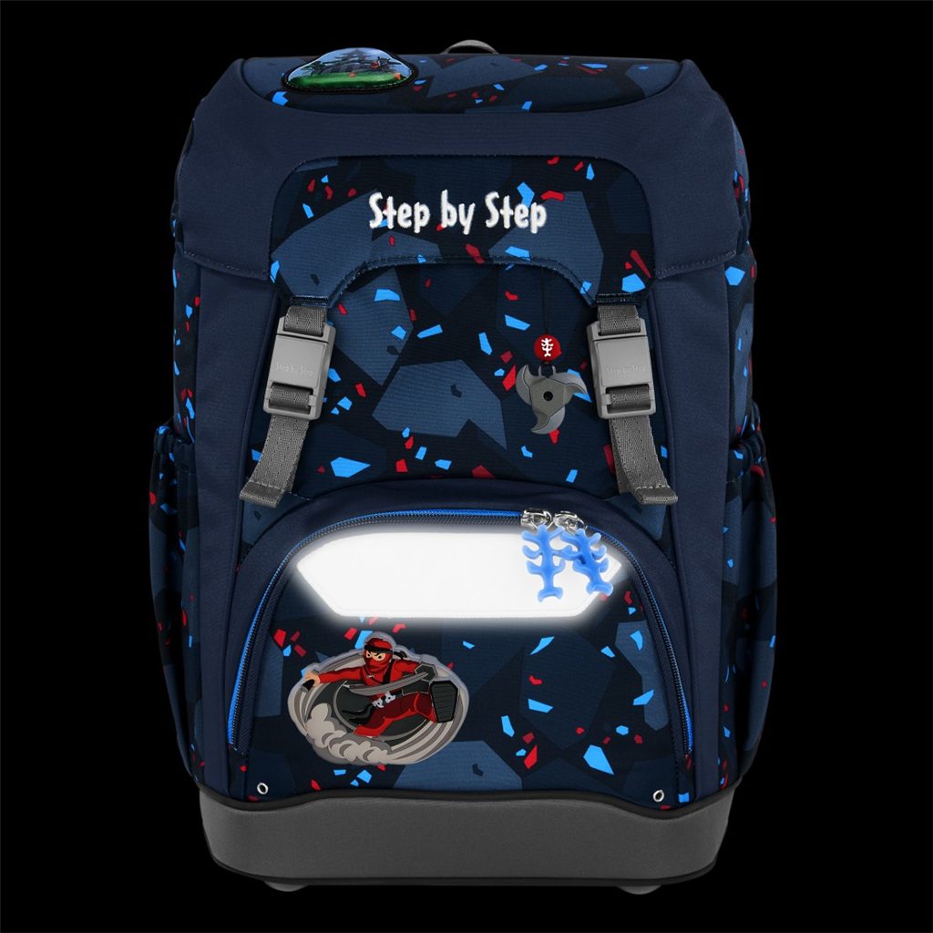 Velmi důležité je zdůraznit, že u výrobků Step by Step se dbá na nejvyšší kvalitu jak použitých materiálů tak i zpracování. Například reflexní plochy, které se nacházejí na každé straně aktovky (to aby byl školák viděn ze všech stran) jsou od značky Oralite (jedné z hlavních výrobců reflexních materiálů používaných na dopravních značkách a ve výrobě automobilů). Přezku u hrudního popruhu nám dodává japonský výrobce zipů a přezek firma YKK. A v neposlední řadě magnetické zavírání dodává značka Fidlock.