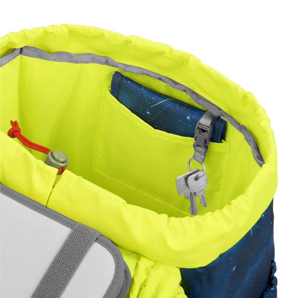 - v klopě gumičky pro umístění penálu, zatíží aktovku z vrchu a tak chrání záda a zároveň šetří prostor v aktovce