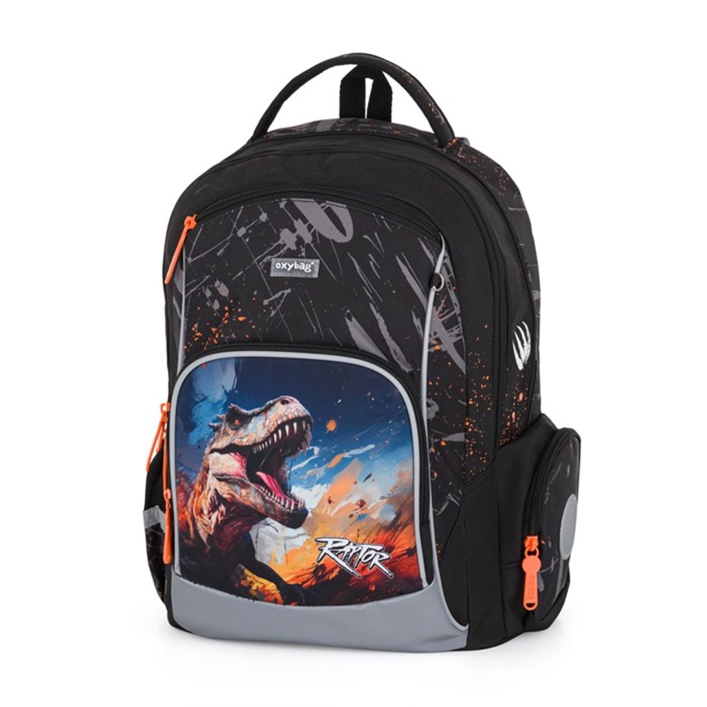 Školní batoh OXY GO zaujme moderním designem a promyšlenou funkčností. Má anatomicky tvarovaná, prodyšná záda a nastavitelné ramenní popruhy pro pohodlné nošení. Přidané háčky umožňují uchycení dlouhých popruhů. Vnitřní kapsy nabízí dostatek místa na učebnice, sešity i další potřeby, pevné nepromokavé dno chrání obsah před ušpiněním a protečením. Boční kapsy, jedna na zip a jedna otevřená, slouží např. na láhev. Reflexní prvky zajišťují bezpečnost. Batoh je ideální pro děti od 1. do 3. třídy vysoké od 125 cm. Délka zádového panelu je 39 cm, objem 22 l, hmotnost 930 g, nosnost 8 kg. Sáček: Praktický na cvičky nebo volnočasové aktivity, uzavírá se šňůrkami. Penál: Jednopatrový se dvěma chlopněmi, poutka na psací potřeby a průhledná fólie na rozvrh hodin.