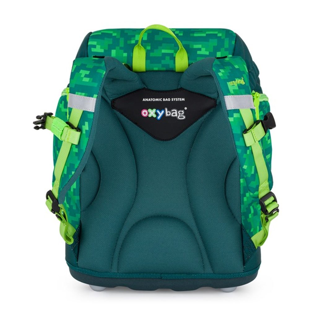 Výhodný set batohu, penálu, sáčku na cvičky a vyměnitelných placek. Školní batoh z řady OXY Sherpy je ideální volbou pro děti od 1. do 3. třídy. Batoh má anatomicky tvarovaný zádový panel, polstrované ramenní popruhy a nastavitelný hrudní popruh, což zajišťuje pohodlí a správné držení těla. Pevné dno opatřené plastovými nožkami zabraňuje převrhnutí a umožňuje batohu stát samostatně. Vnitřní rozřaďovač pomáhá udržet pořádek, zatímco zapínání hlavní komory na stahovací šňůrku a magnetické zapínání je praktické a snadno ovladatelné jednou rukou. Boční kapsy na zip jsou ideální na lahev s pitím, přední kapsa na svačinu poskytuje další úložný prostor. Nechybí reflexní prvky pro větší bezpečnost dítěte. Díky vyměnitelným plackám na suchý zip si může každý školák přizpůsobit design batohu podle svého vkusu. Batoh je doporučen pro děti vysoké od 121 cm. Délka zádového panelu je 33 cm, objem činí 28 l, hmotnost batohu je 950 g a jeho nosnost je 8 kg.
