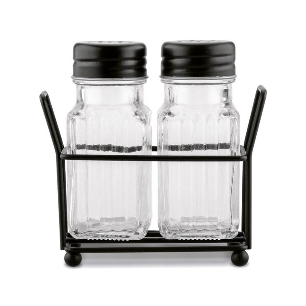 - slánka+pepř. 2-dílná, 70ml, sklo, stoj.černý, kov