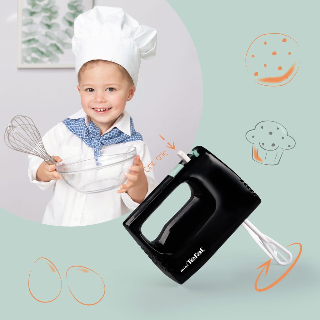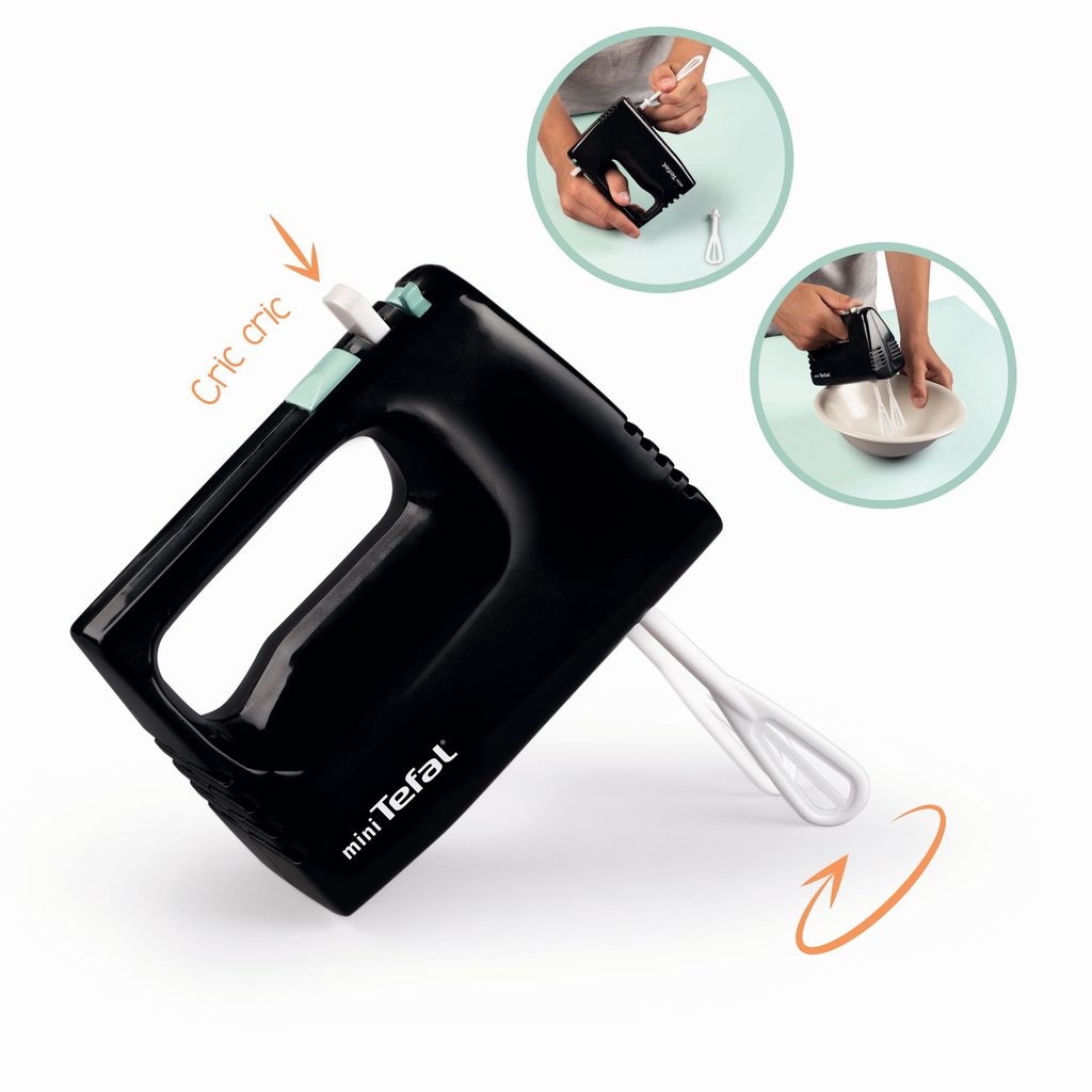 Věrná replika ručního šlehače mini Tefal je ideální do každé kuchyňky při přípravě oběda nebo při pečení. Metličky se točí mechanicky stlačením tlačítka. Výrobek nevyžaduje baterie. Rozměry (DxŠxV): 11 x 5 x 17 cm.