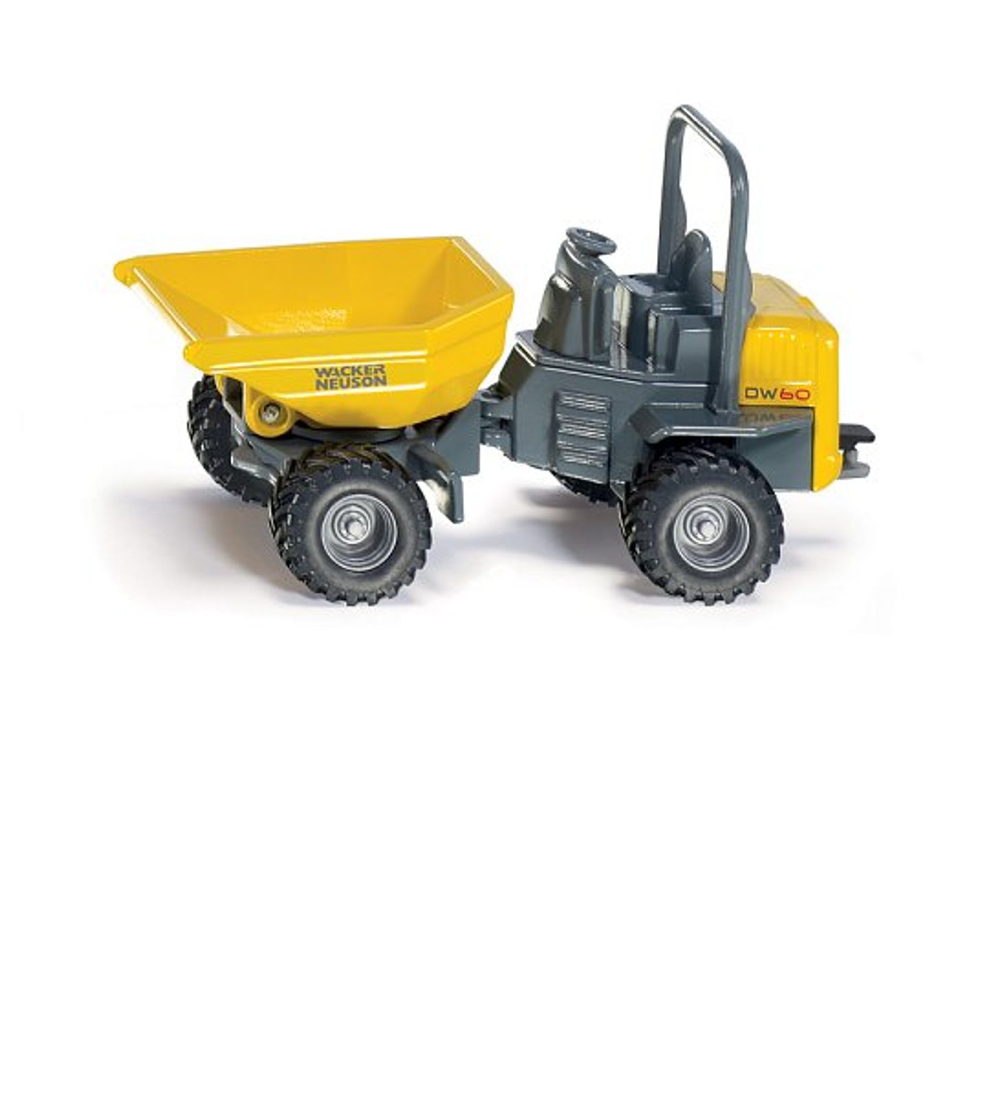 Wacker Neuson DW 60 Dumper je detailně propracovaná kopie v měřítku 1:50. Nový DW 60 od Wacker-Neuson je sklápěč vhodný na všechny povrchy malých a středních stavenišť. Pomocí kloubového spoje ve středu vozidla, je sklápěč schopen mnoha manévrovacích pohybů v těch nejmenších prostorech. Charakteristický rys tohoto modelu je jeho kovový sklápěč, který jde současně sklopit a otočit o 180 stupňů. Díky hlubokému vzorku pneumatiky, vyrobeného z pogumovaného materiálu, drží pevně, a to i na nerovných površích. Rozměr: 106 x 47 x 68 mm. Rozměr balení: 8,7 x 15,5 x 5,9 cm. Věk: 3+
