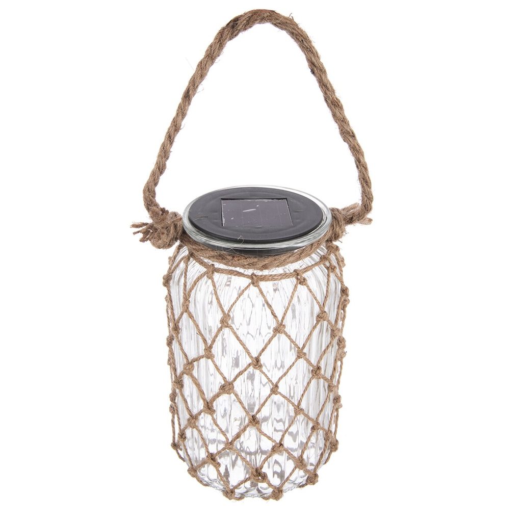 Solární lucerna je elegantní dekorativní prvek, který oživí váš interiér i venkovní prostory. Je vyrobena ze skla a doplněna o přírodní jutový detail, díky čemuž působí stylově a zároveň přirozeně. Přes den se lucerna nabíjí pomocí solárního panelu a po setmění se automaticky rozsvítí teplým LED světlem, které vytváří útulnou a příjemnou atmosféru. Materiál: sklo, juta, plast PP. Rozměry: 18,5x11 cm.