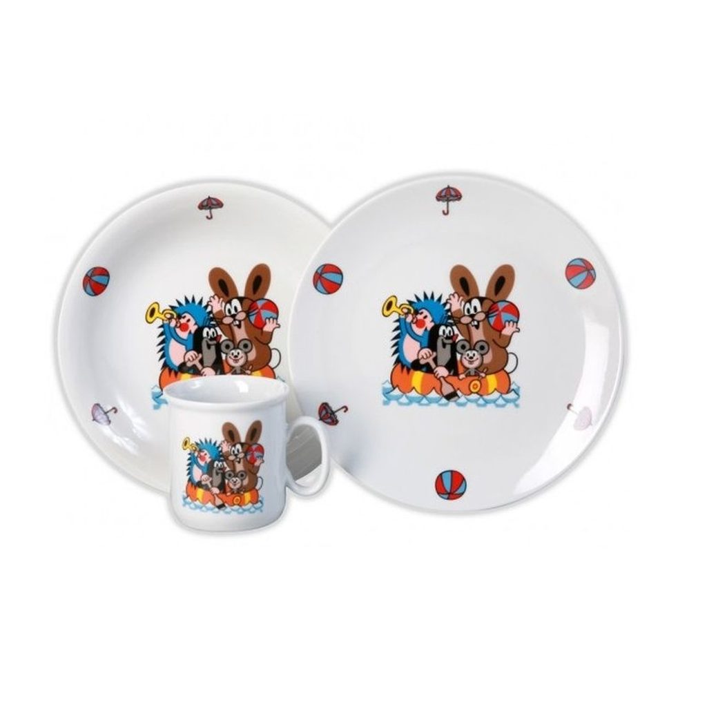 Dětský porcelánový set s motivem KRTEČKA obsahuje hrnek a 2 talíře. Každý produkt je zdravotně nezávadný a certifikovaný. Český porcelán. Vhodné do mikrovlnné trouby i do myčky nádobí.