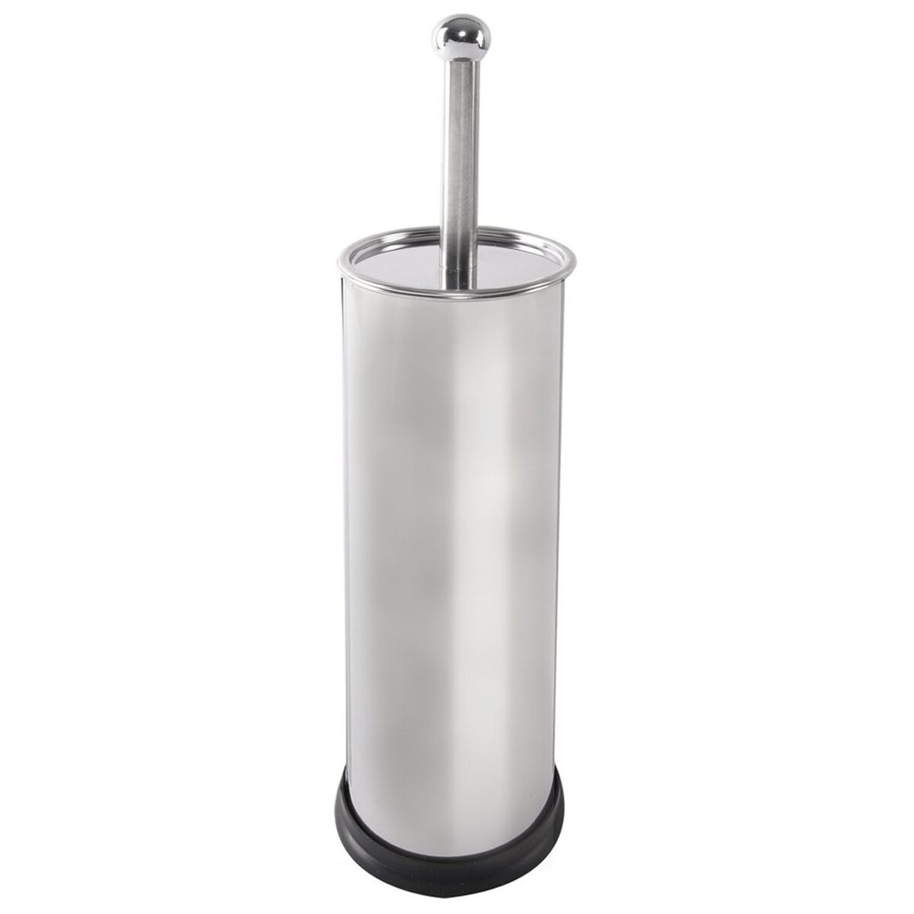 Souprava na WC. Materiál: nerez, plast. Rozměry: délka štětky 36 cm, průměr nádoby 10 cm, celková výška 38 cm.