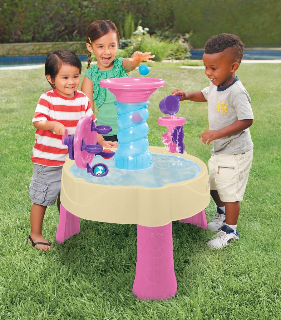 • Obsahuje: 5 míčků, plnící pohár Sledujte, jak se malým dětem daří díky hodinám zábavy a nápadité hry, které s tímto vzrušujícím vodním stolem přicházejí! Je nabitý funkcemi, které zlepšují jemnou motoriku, rozvíjejí jejich chápání sdílení a podněcují jejich kreativitu. Podívejte se, jak voda otáčí kola nebo jednoduše stříká. Je zde i spousta přiložených zábavných hraček do vody pro děti! Vhodný díky své výšce i pro batolata.