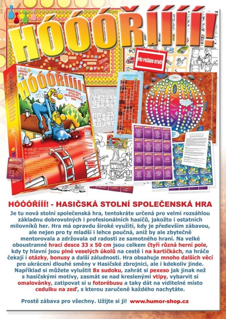 Hra vhodná pro hasiče, kteří mají dlouhou směnu. Ale také je to lehce poučná hra pro děti. Prioritou hry je, aby se zabavili malí i velcí. Hru si může člověk zahrát i sám, ale také si můžete zahrát hru s rodinou nebo s partou kamarádů libovolného věku. Na velké hrací desce jsou celkem čtyři herní pole, z nichž každé vás zabaví jinou formou. Na hlavních velkých polích budete úkolováni, zdržováni a vraceni, ale budete i odměňováni různými bonusy a během hry budete využívat i otázky a úkoly na kartičkách. Můžete si zahádat u fotorébusu, o co se na fotkách jedná, vyluštit si sudoku, vybarvit obrázky a pobavit se u vtipů. Pexeso je klasika, a proto jej v této hře naleznete také.