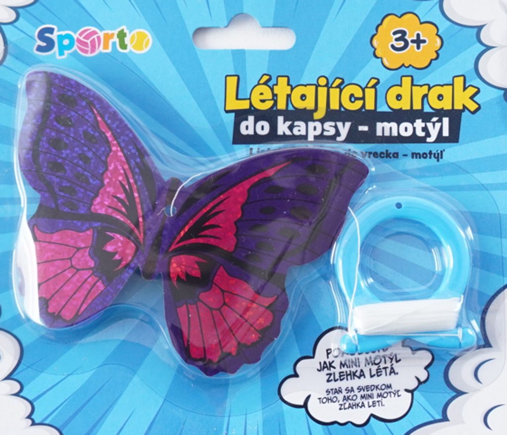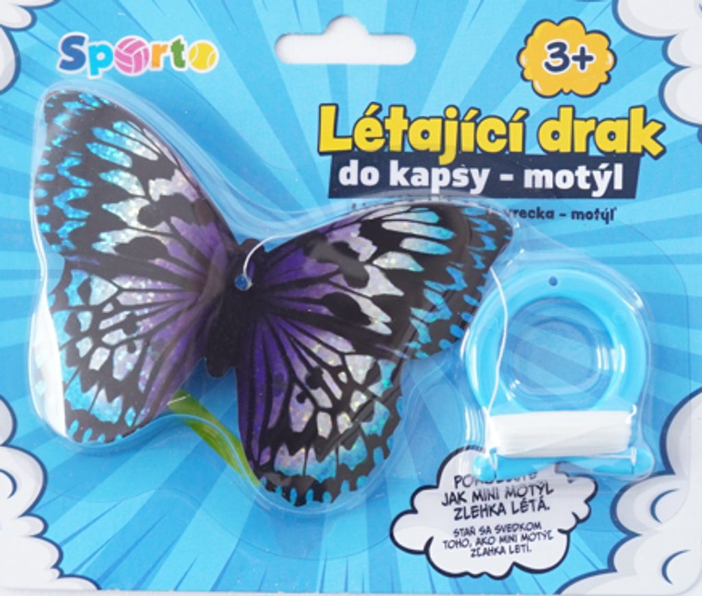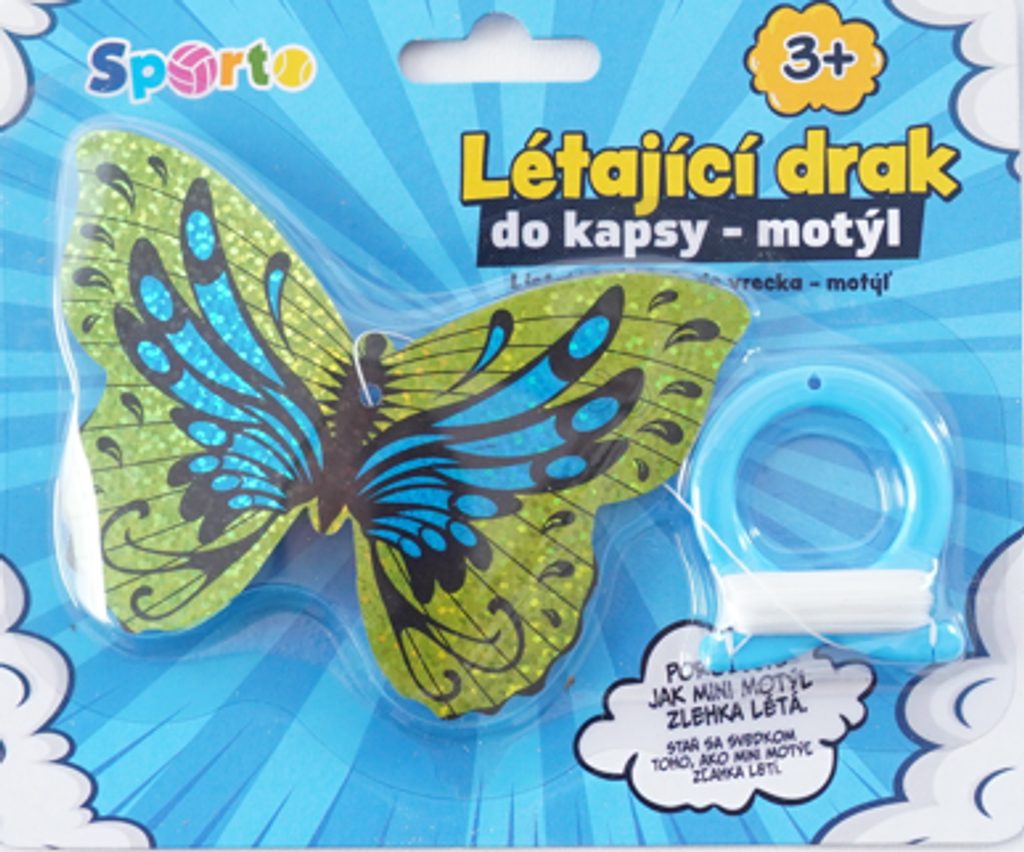 Malý létající drak ve tvaru motýla. Ideální na výlety. Schováš ho do kapsy a už jenom čekáš až bude vítr. Jednoduché pouštění. Krásné létá.