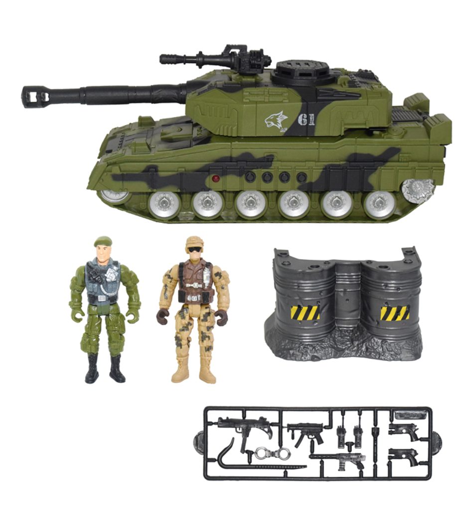 Vojenská sada se světelnými a zvukovými efekty. Obsahuje tank, postavičky vojáků a další příslušenství.