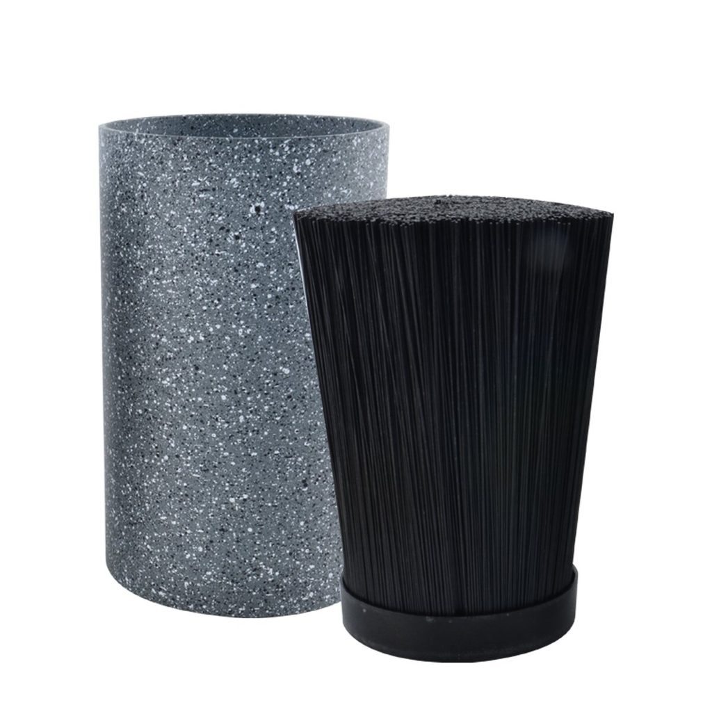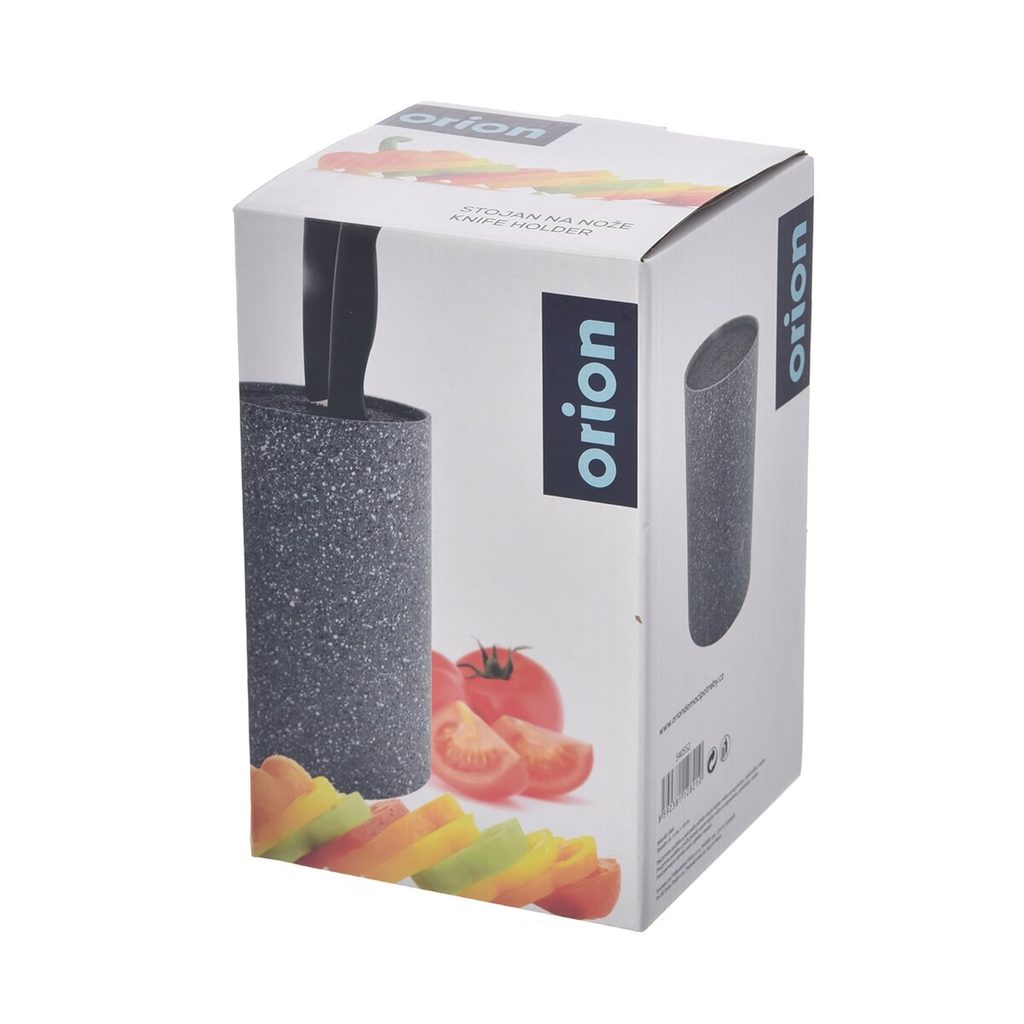 Stojan na nože s plastovými štětinami brání poškrábání vložených nožů i dalších kuchyňských pomůcek - nůžky, škrabky,.... Při čištění štětiny jednoduše ze stojanu vyjmeme. Materiál: plast. Barva šedá. Rozměry: v. 18 cm, pr. 11 cm.