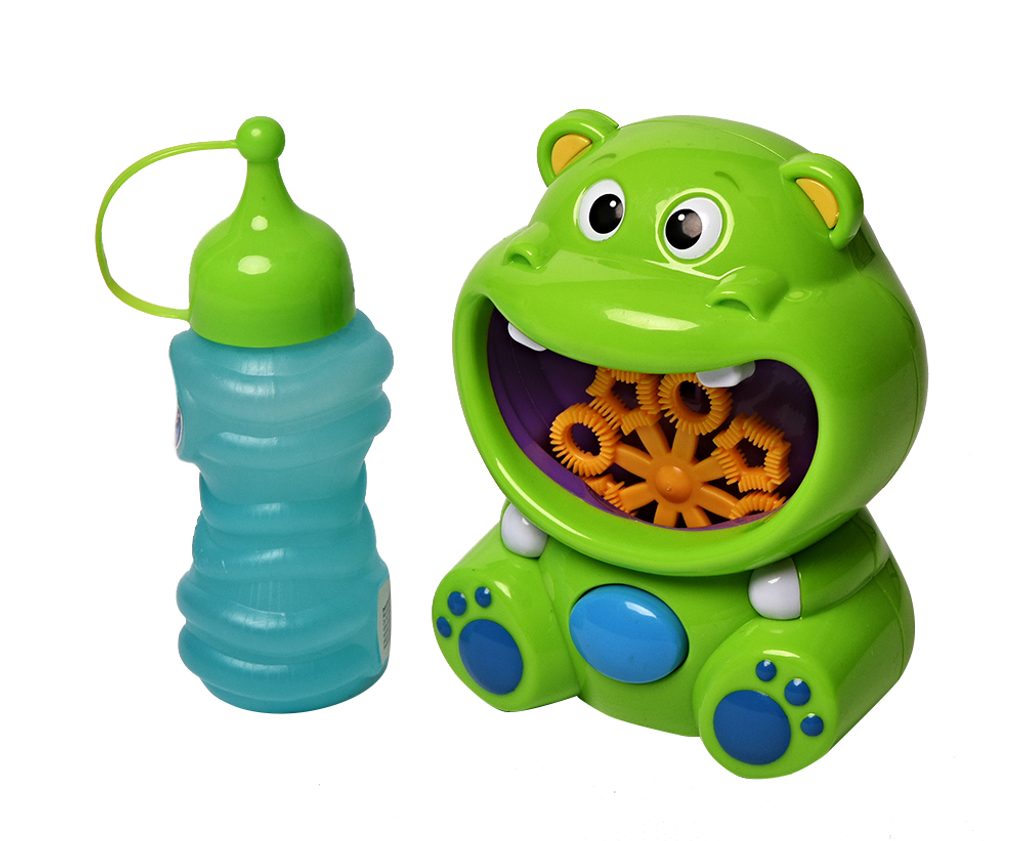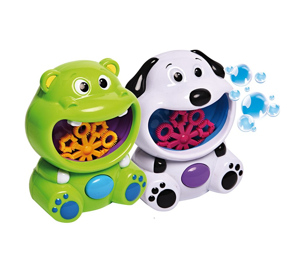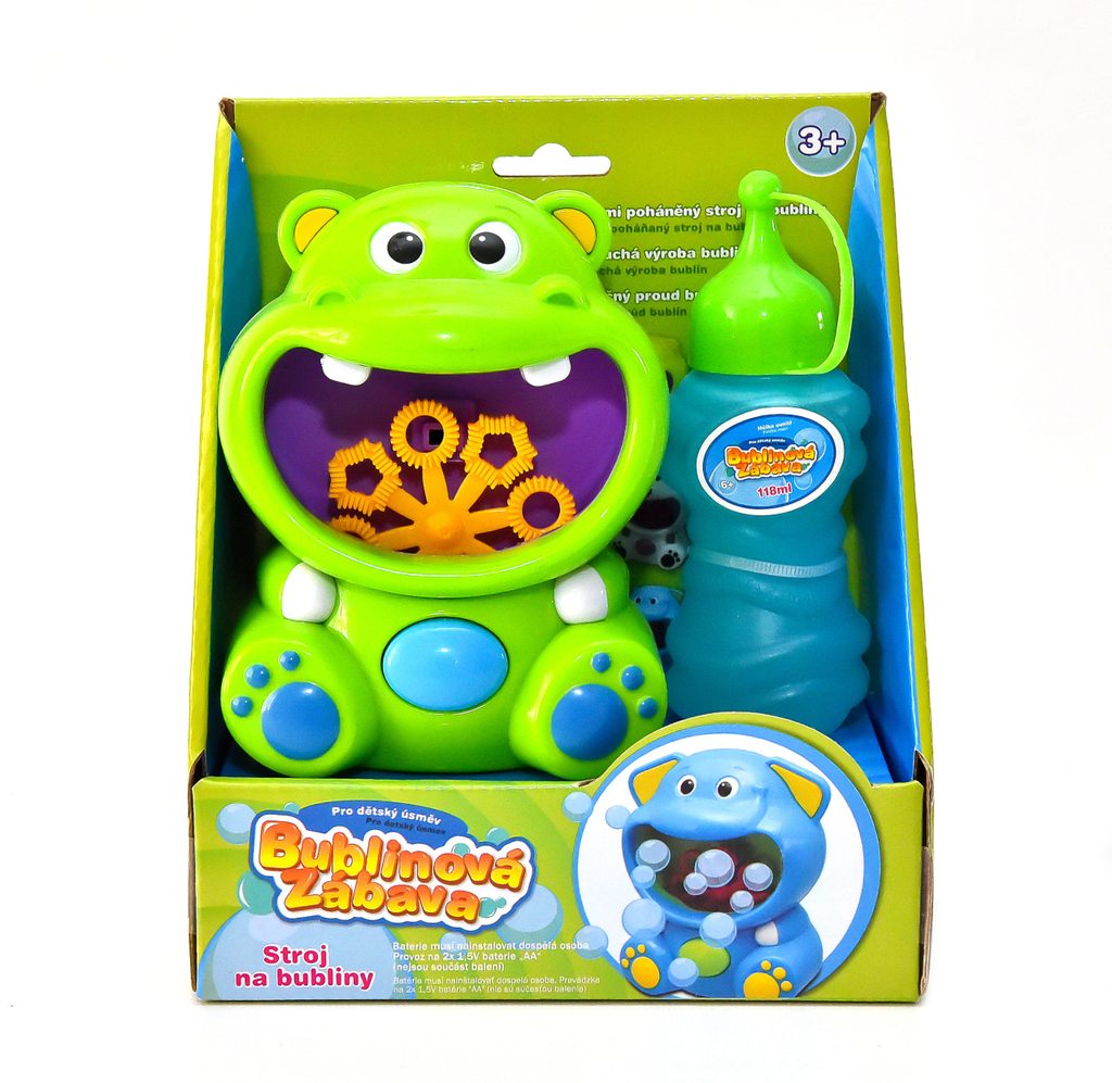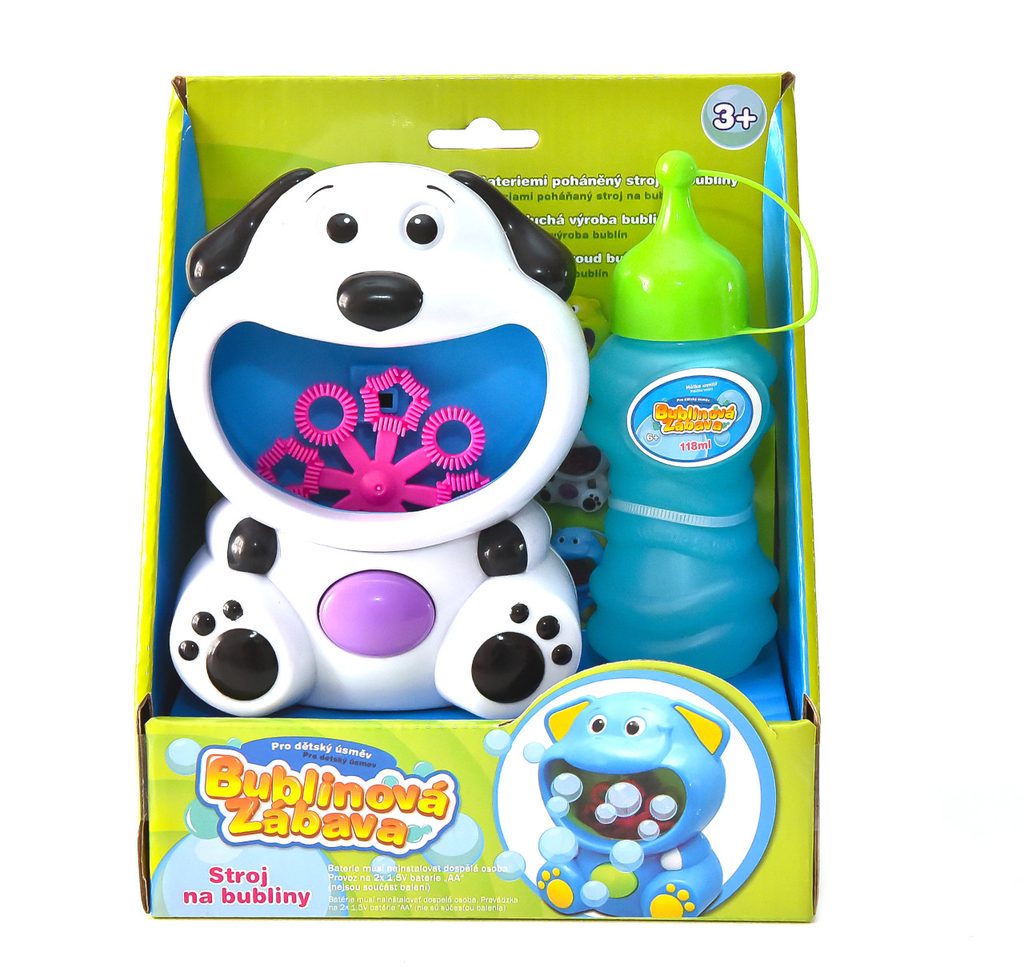 Stroj na bubliny s motivem zvířátka. Nalij bublifuk do strojku a sleduj, kolik se valí bublin. Hodně bublin bez námahy.