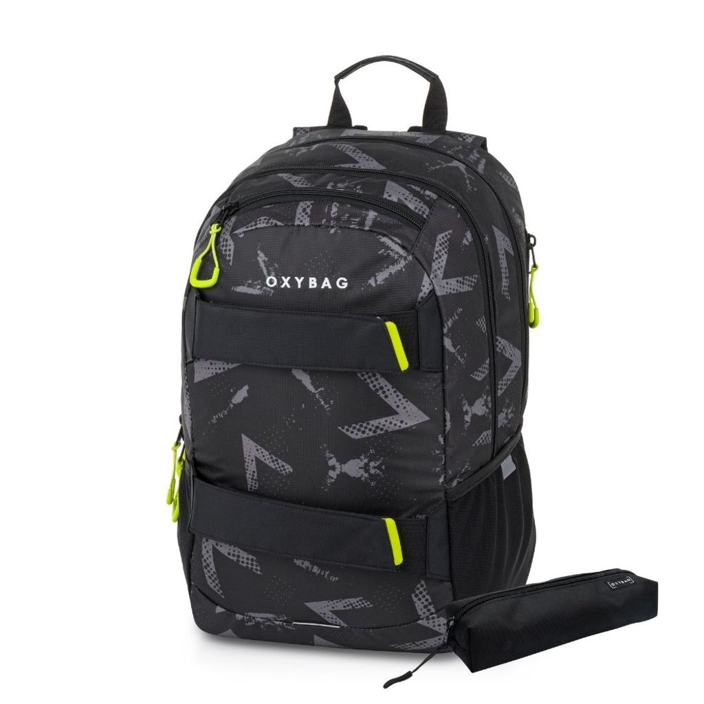 Výhodný set batohu a studentské etue. Batoh: Studentský i volnočasový školní batoh řady OXY SPORT vyniká ergonomicky tvarovanými zády, nastavitelnými polstrovanými ramenními popruhy a hrudním popruhem, díky kterým se pohodlně nosí. Batoh se skládá ze dvou hlavních komor a jedné menší přední kapsičky opatřenými pevnými zipy a praktickými poutky. Uvnitř batohu je vyztužená kapsa na notebook, karabina na klíče, menší kapsa na drobnosti a skrytá kapsa na zádech. Nechybí také boční kapsa na lahev na pití a řada reflexních prvků, díky kterým je batoh lépe viditelný. Batoh je ideální jak pro školáky na druhém stupni tak i pro volnočasové aktivity studentů a dospělých. Délka zádového panelu je 46 cm, objem činí 24 l, hmotnost batohu je 870 g a jeho nosnost je 8 kg. Etue: Studentské pouzdro na psací potřeby s praktickou elastickou gumou, uzavírání na zip.