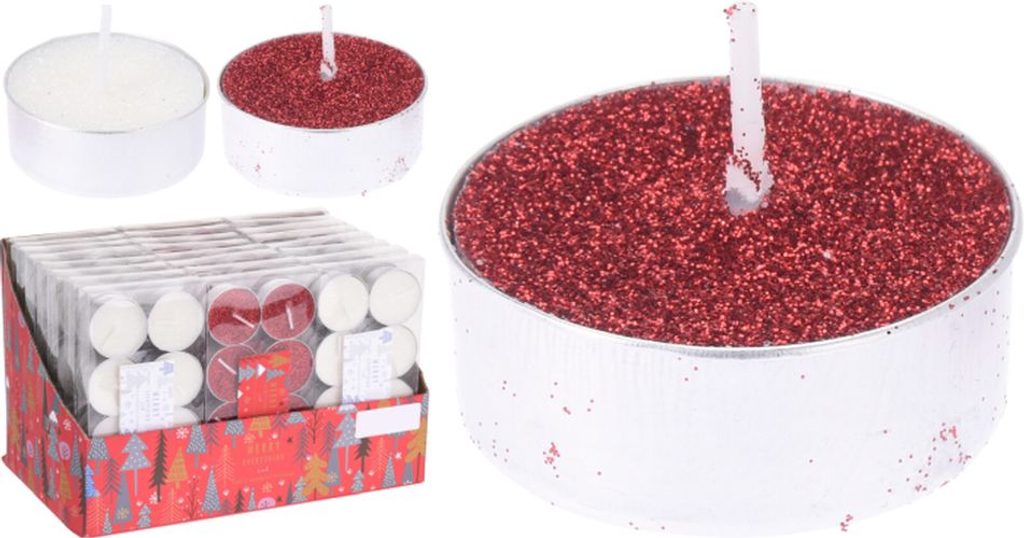 - svíčka čaj. 8ks VÁNOČNÍ, d3,7cm, třpytivá, mix barev