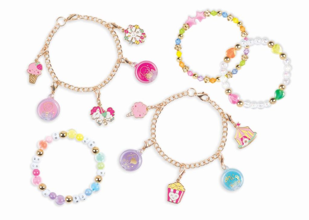 Zkuste své štěstí na veletrhu a vytvořte si pět DIY kouzelných náramků! Každý náramek obsahuje elegantní smaltovaná kouzla, která přinášejí nostalgickou radost ze dne stráveného na karnevalu. Sada obsahuje čtyři vlastní přívěsky s leskem na rty s jahodovou vůní, které ozdobí náramky a dodají šmrnc každému vzhledu make-upu. Obal s motivem ruského kola se dokonce otáčí, díky čemuž je tato sada zábavná jak pro hraní, tak pro tvoření. Tato sada je ideální pro děti, které chtějí svému dennímu outfitu dodat nádech stylu, a je fantastickým dárkem k narozeninám, svátku nebo jen tak. Veškerá kosmetika je testována na bezpečnost pro věk 8+. Zkuste své štěstí na veletrhu a vytvořte si pět DIY kouzelných náramků! Každý náramek obsahuje elegantní smaltovaná kouzla, která přinášejí nostalgickou radost ze dne stráveného na karnevalu. Sada obsahuje čtyři vlastní přívěsky s leskem na rty s jahodovou vůní, které ozdobí náramky a dodají šmrnc každému vzhledu make-upu. Obal s motivem ruského kola se dokonce otáčí, díky čemuž je tato sada zábavná jak pro hraní, tak pro tvoření. Tato sada je ideální pro děti, které chtějí svému dennímu outfitu dodat nádech stylu, a je fantastickým dárkem k narozeninám, svátku nebo jen tak. Veškerá kosmetika je testována na bezpečnost pro věk 8+.