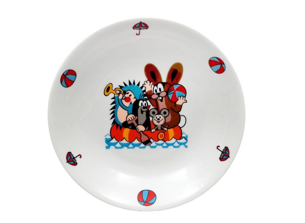 - talíř d20cm hluboký, KRTEK a člun, dětský,český porc.