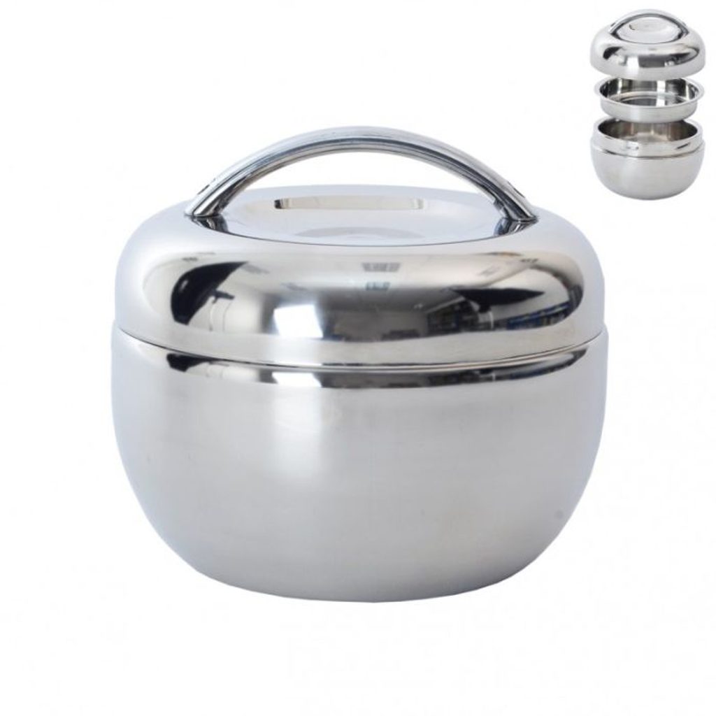Celonerezová termomísa APPLE o objemu 1 l, s termo víčkem a vloženou miskou, slouží k uchování teplých nebo studených pokrmů. Termomísa se hodí na teplé i studené pokrmy, od doma připraveného oběda do práce nebo pro vaše blízké až po převoz zmrzliny a potravin na dovolenou nebo grilování. Jak dlouho zachová teplotu jídel, záleží na teplotním rozdílu mezi vnitřkem nádoby a jejím okolí, tipy na efektivní prodloužení teploty vložených pokrmů najdete na obalu. Není vhodná do myčky. Rozměry: v. 13cm x pr. 14,5cm x obj. 1l. termomísa 1,0l APPLE d14,5x13cm NR