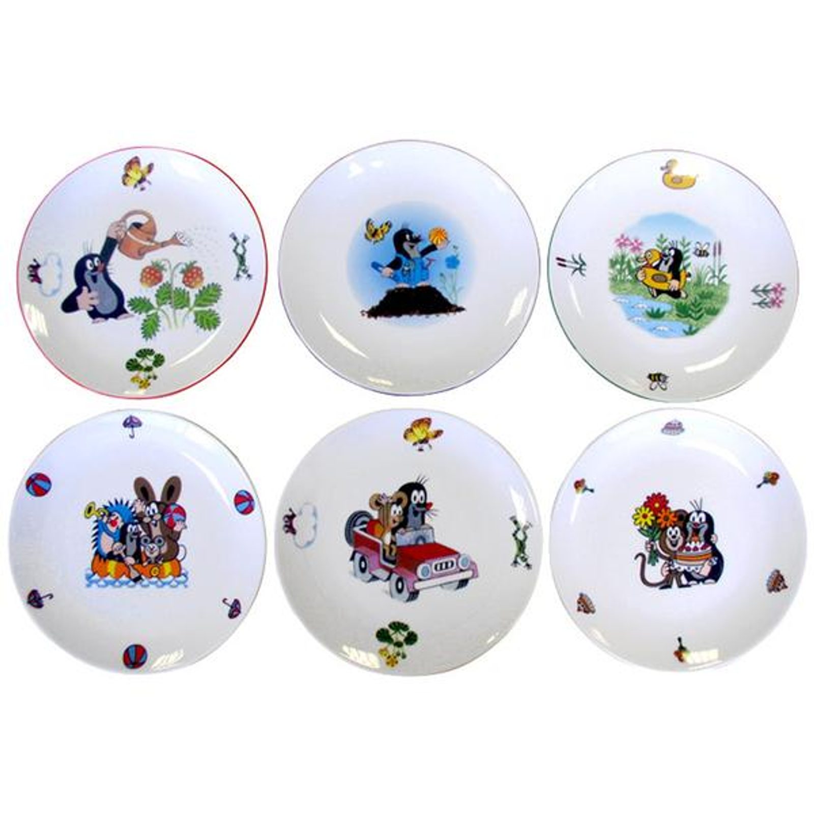 Dětský porcelánový mělký talíř "Krtek" z populárního večerníčku. Tradiční kvalita českého porcelánu. Každý produkt je zdravotně nezávadný a certifikovaný. Lehké pro dětské užívání. Lze mýt v myčce. Průměr talíře - 20,8 cm, výška 2,1 cm. Mix motivů.