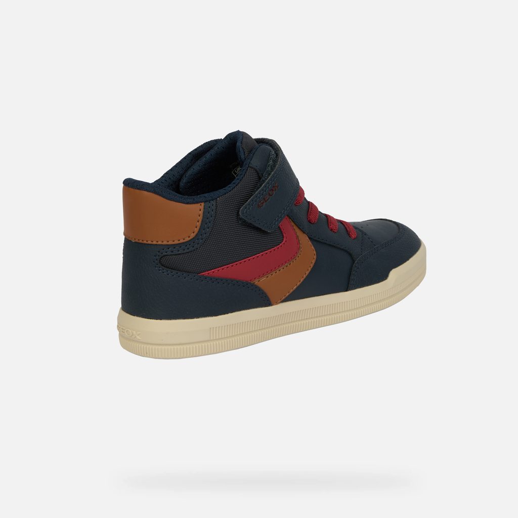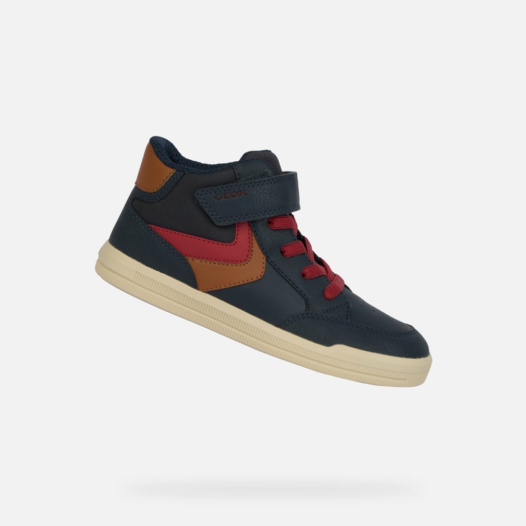 Tyto prémiově zpracované chlapecké tenisky jsou ideálním společníkem pro školu, hřiště i víkendové výlety. Sofistikovaná kombinace tmavě modré s výraznými červenými akcenty dodává botám moderní sportovní vzhled, který si zamiluje každý mladý dobrodruh.