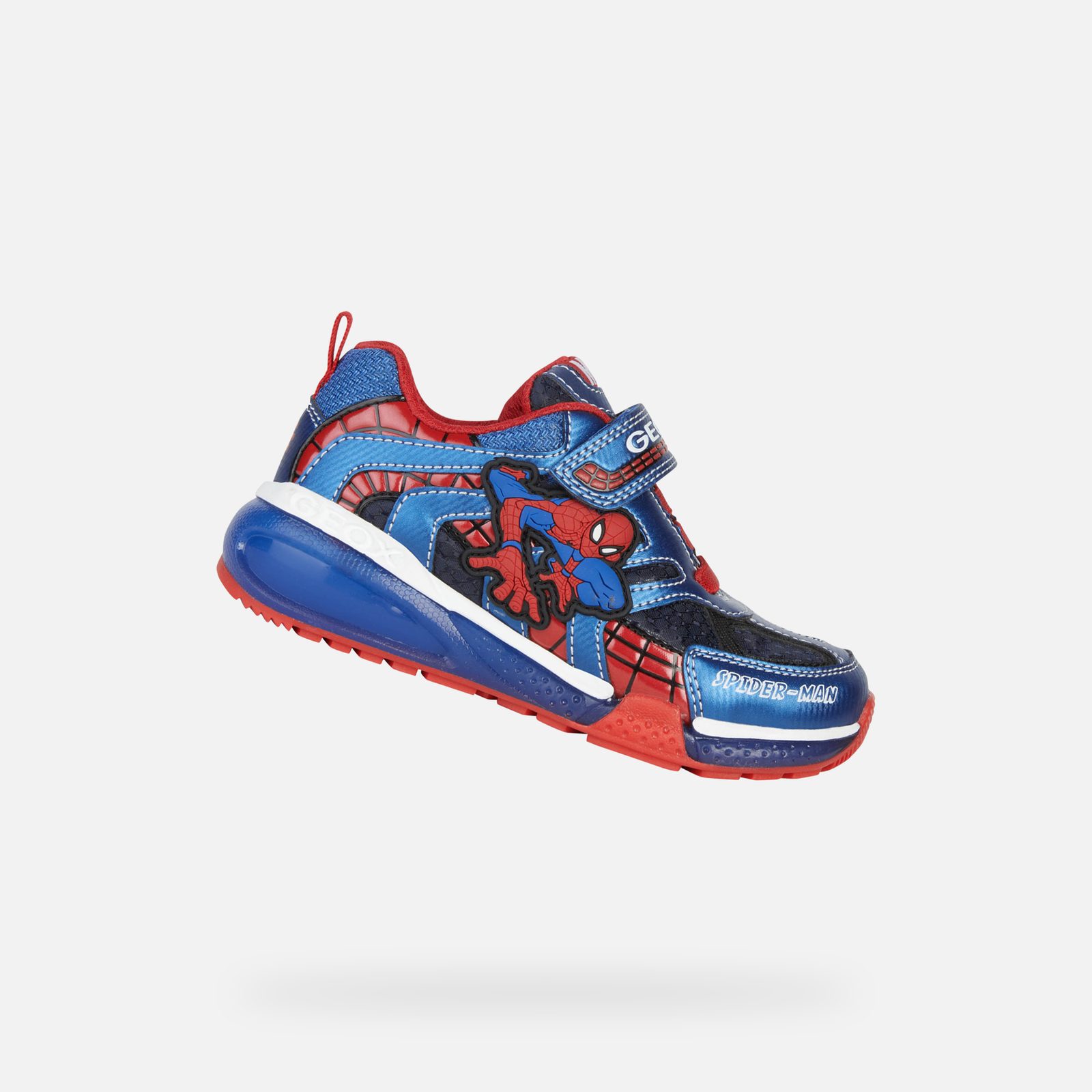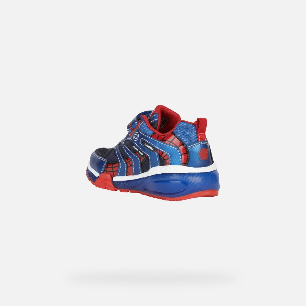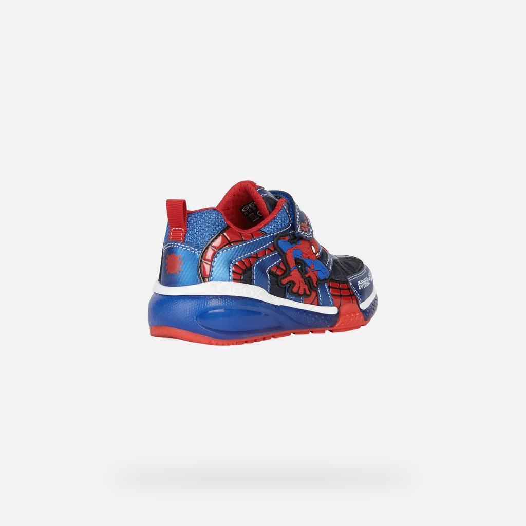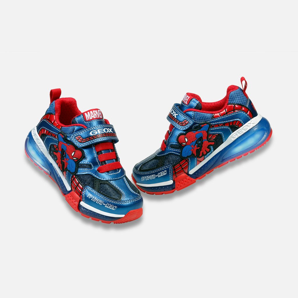 Tyto chlapecké tenisky s nízkým střihem, která je výsledkem partnerství značek Geox a Marvel, vyzařuje ležérní pohodu a je mimořádně pohodlná. Model Bayonyc, vytvořený s ohledem na malé fanoušky Spider-Mana, se pyšní nádhernou kresbou na svršku v námořnicko-královské modré barvě s červenými akcenty, které jasně odkazují na kultovní postavu. Je vyrobena z látky a potištěného materiálu s koženým efektem, do průhledné podrážky jsou zabudována blikající světýlka a děti si v ní užijí hodiny zábavy při procházkách ve společnosti slavného superhrdiny.Inovace a styl v jednom. Objevte naše hi-tech technologie, které kombinují nejvyšší úroveň výkonu s moderním designem.