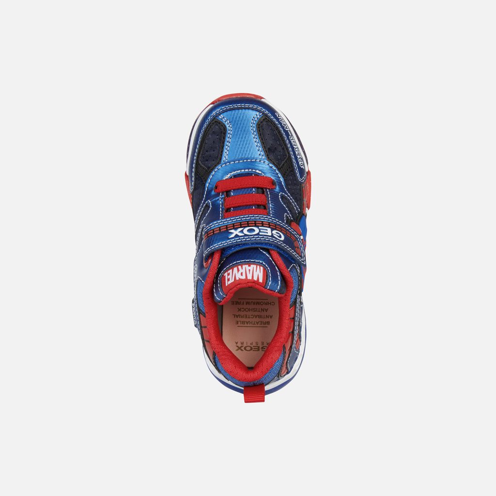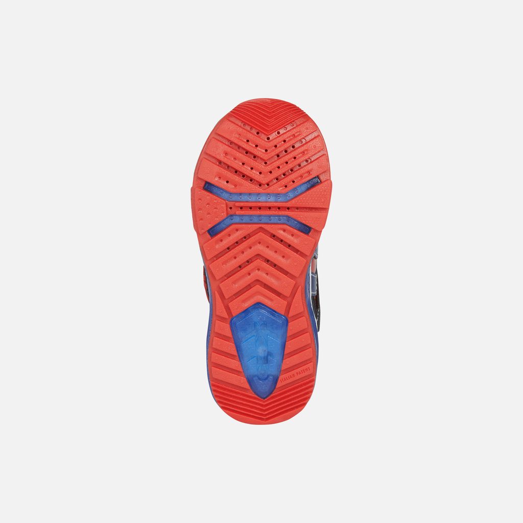 Stylovost na cestách a pohoda po celý den díky originálnímu systému navrženému společností Geox, který podporuje prodyšnost a zároveň přináší pohodlí a ochranu při chůzi. Tyto chlapecké tenisky s nízkým střihem, která je výsledkem partnerství značek Geox a Marvel, vyzařuje ležérní pohodu a je mimořádně pohodlná. Model Bayonyc, vytvořený s ohledem na malé fanoušky Spider-Mana, se pyšní nádhernou kresbou na svršku v námořnicko-královské modré barvě s červenými akcenty, které jasně odkazují na kultovní postavu. Je vyrobena z látky a potištěného materiálu s koženým efektem, do průhledné podrážky jsou zabudována blikající světýlka a děti si v ní užijí hodiny zábavy při procházkách ve společnosti slavného superhrdiny.Inovace a styl v jednom. Objevte naše hi-tech technologie, které kombinují nejvyšší úroveň výkonu s moderním designem.