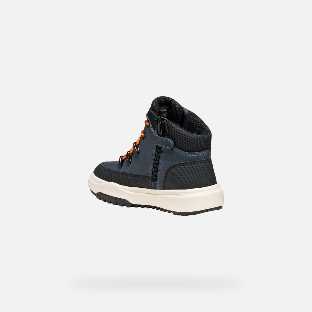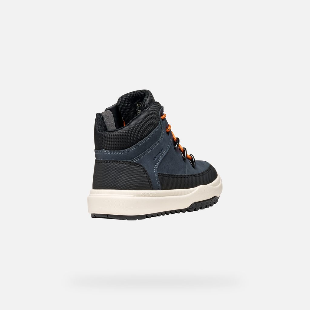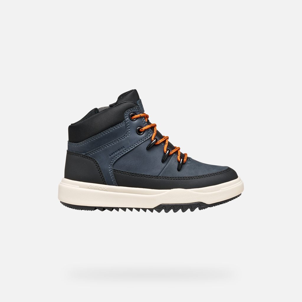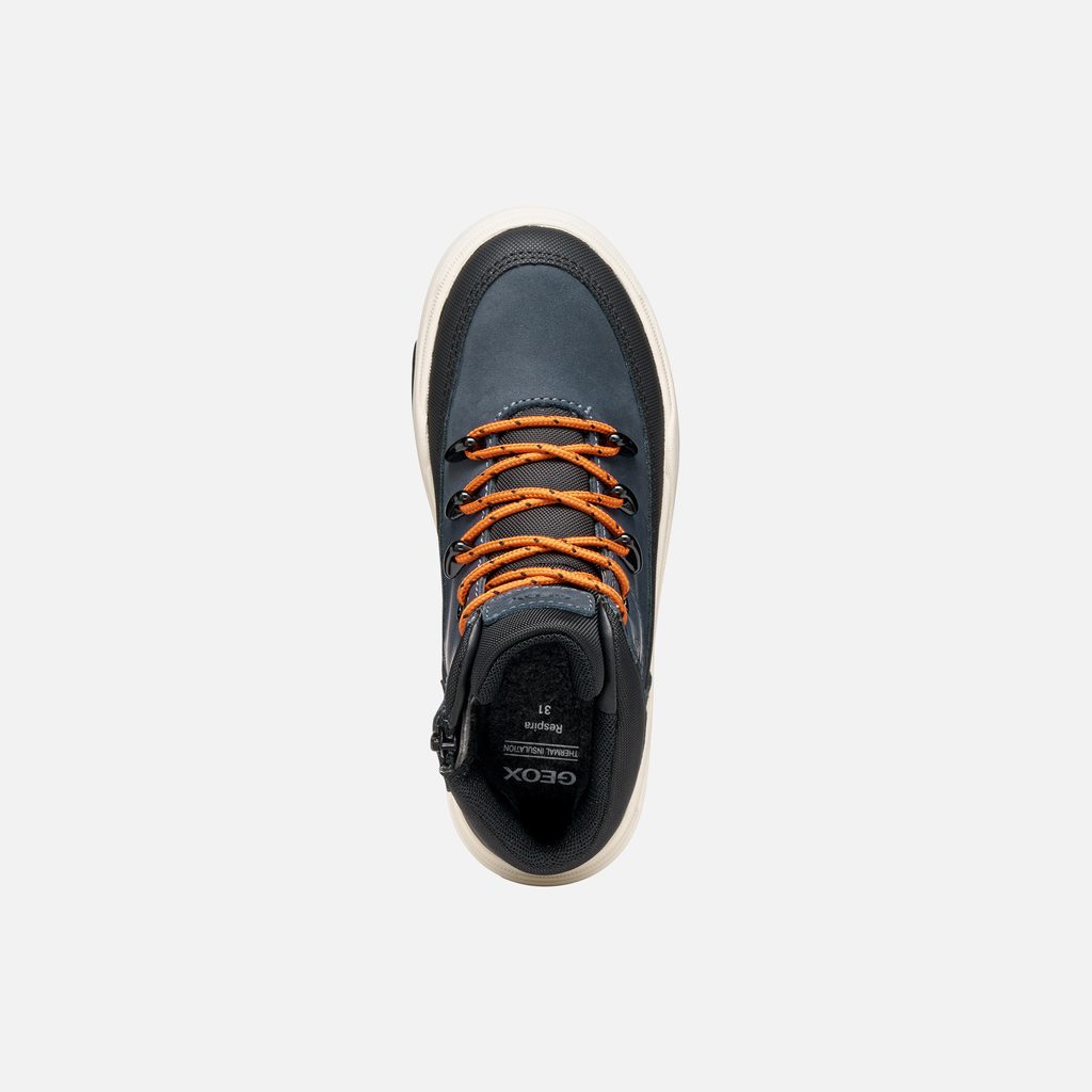 Stylové chlapecké tenisky Geox Bunshee v tmavě modrém provedení zaujmou kontrastními oranžovými tkaničkami a propracovaným designem. Kombinace hladkých panelů a síťované textury vytváří moderní vzhled, který potěší každého mladého nositele.